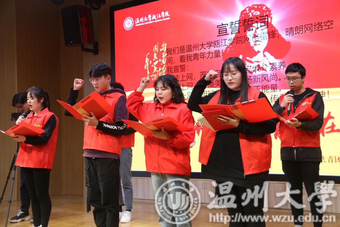 瓯江学院“雷锋月”系列活动启动仪式暨大学生志愿服务认证中心平台上线启动仪式举行。多年来,学院坚持党建带团建,首创的“预备党员50小时志愿服务制”经过十余年的发展,也涌现出多个特色的志愿服务项目。为了更好地做好“互联网+”党建,学院充分运用互联网开放性、交互性、快捷性等优势,依托强大的云平台作为数据支撑,让志愿服务更加开放、高效、互动,推动党团志愿服务线上线下全面延伸。由该院师生自主研发的大学生志愿服务认证中心平台也全面上线并启动。学院党委副书记叶正飞希望学子把责任“担”起来、把精神“扬”起来、把作用“活”起来,大力弘扬奉献、友爱、互助、进步的志愿服务精神,用行动践行诺言,为社会发展贡献自己的青春力量。