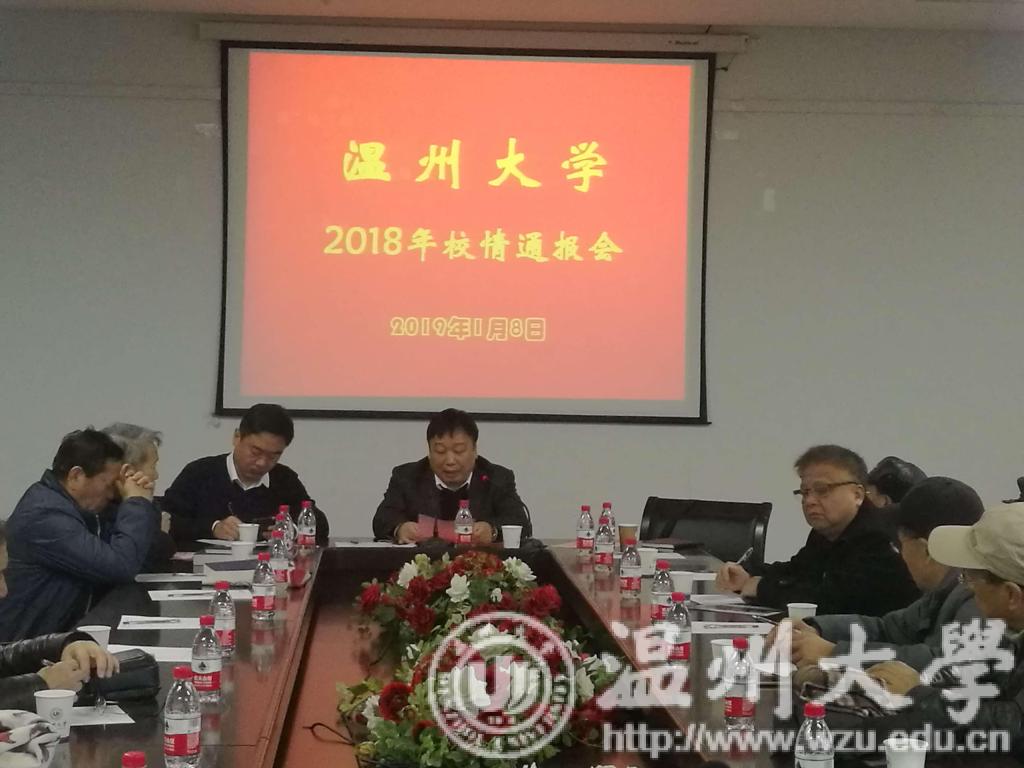 1月8日上午,离退休老同志校情通报会在学院路校区老干部活动中心召开。近40位离退休老同志代表参加会议,校长赵敏、党委副书记牟德刚、副校长钱强及学校相关部门负责人出席了会议。牟德刚主持会议。