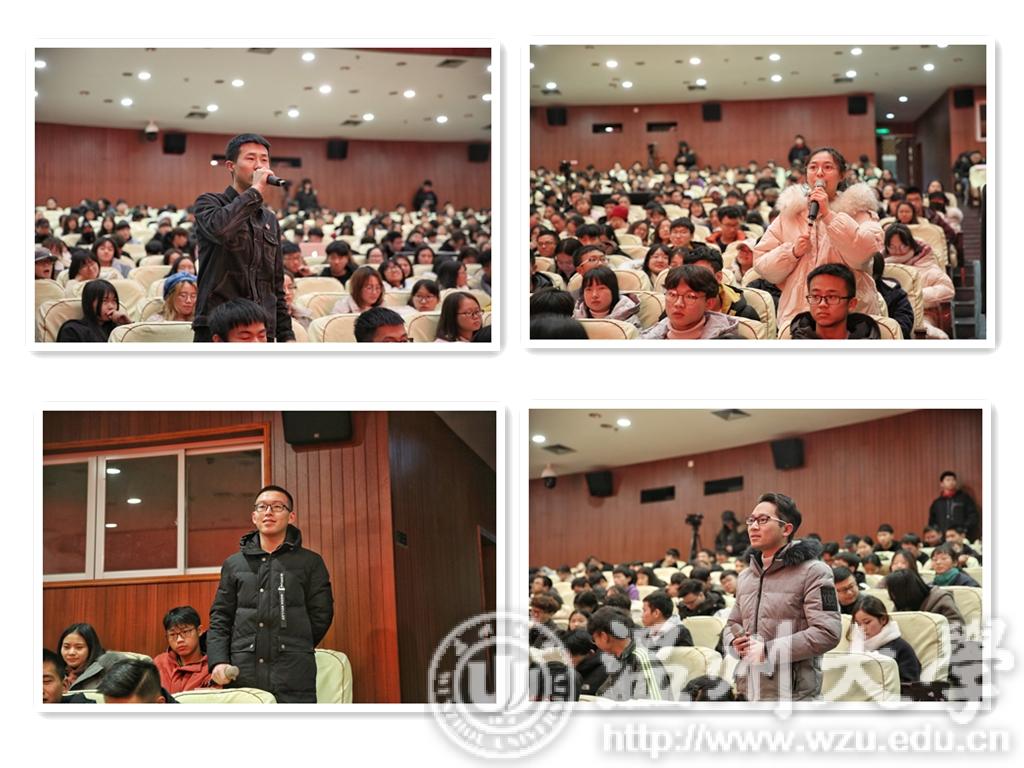 “改革开放改变了中国,也改变了我的命运。我们每个人都是新时代的见证者、建设者和受益者。我们的勇气与机遇是改革开放赋予的,我们的光荣与梦想也是改革开放赋予的。不忘初心,努力奋斗是我们对新时代最好的回应。”南存辉说,没有改革开放就没有如今的正泰。他的40年,与改革开放同步,与温州民营经济的发展同步。台上,南存辉的话语朴素真挚而意味深长、发人深省。台下,师生们认真聆听、备受鼓舞。