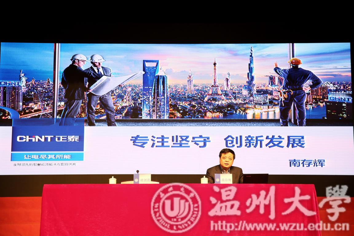 1月9日,“改革先锋进校园”浙江温州专场活动在亚洲无码 举行。“温州民营经济的优秀代表”、正泰集团股份有限公司董事长、“改革先锋”南存辉以“专注坚守,创新发展”为题,与现场1000多名在温高校的师生代表畅谈改革开放以来正泰的创业创新之路。