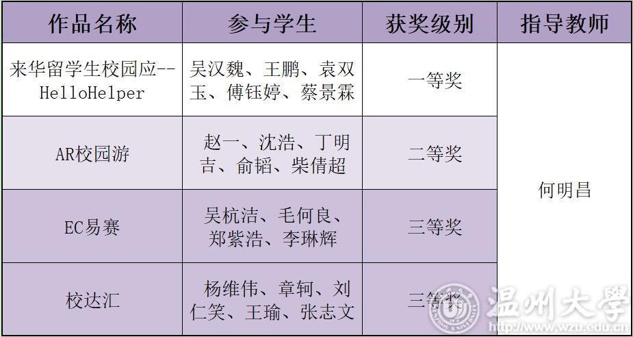 近日,浙江省第十七届大学生多媒体作品设计大赛决赛举行。经过专家评审、网络评审和现场答辩等环节,亚洲无码 报送的4件移动开发作品,在比赛中脱颖而出,获得一等奖1项,二等奖1项,三等奖2项。4件作品的指导者均为何明昌老师。