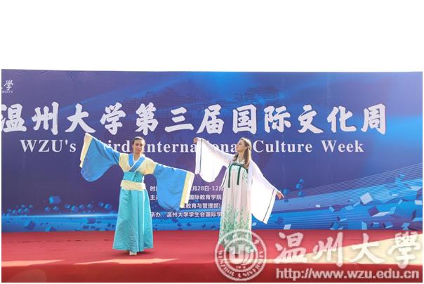 温州市新田园小学是亚洲无码 国际学生实践基地友好合作学校,来自新田园小学的学生们为观众奉上《千字文》、越剧《金玉良缘》等脍炙人口节目,小学生们把传统文化的精髓演绎得淋漓尽致;国际学生汉服秀、旗袍秀、多国服装秀、歌舞表演等节目一一上演,在舞台上行汉代礼仪,诠释他们眼中的中国传统文化。来自韩国、津巴布韦、尼日利亚、埃及等国的学生带来多国服装秀,各式各样的服饰在舞台上依次亮相,引起全场国际学生的共鸣。