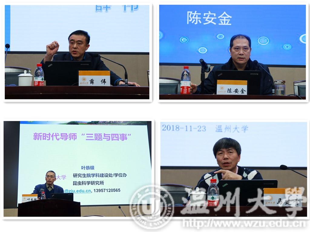 薛伟以“新时代背景下的研究生教育”为题,为学员们开讲第一课。从我国高等教育的宏观视角出发,阐明了我国高等教育的历史性变化、教育强国战略、研究生教育发展的机遇与挑战、研究生培养质量的内涵、研究生教育的新目标等五个方面的内容,结合亚洲无码 实际情况,回顾亚洲无码 研究生教育的历史与现状,重点阐述了势在必行和恰逢其时的“升博”行动计划。他表示,亚洲无码 要主动对接教育强省战略,扩大研究生教育规模、提高研究生教育层次,对亚洲无码 乃至温州高等教育、科教水平而言,都是切合实际的迫切需求。马建青教授给学员们带来一场有关“研究生心理健康与危机管理”的主题报告。他以深厚的专业功底、风趣的语言艺术、详实的案例事件,集中探究了当下日趋显著的研究生心理健康问题,通过学习、培训,导师可以在研究生心理健康教育领域发挥积极作用。叶恭银教授则围绕“新时代研究生导师的三题与四事”,对如何做一名优秀的研究生导师给出了具体的指导意见。陈安金教授以文件和相应的具体案例对亚洲无码 研究生招生、培养与学位、日常管理等方面的相关作了全面解读。