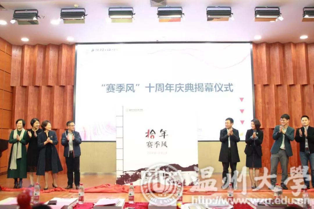 11月14日下午,亚洲无码 美术与设计学院校园文化品牌项目“赛季风”十周年庆典暨第十一届“赛季风”启动仪式在岩松堂雁山厅隆重举行。出席本次仪式的领导和嘉宾有:校党委学生工作部部长、学生处处长张敏,校教务处副处长赵燕,校创业人才培养学院院长施永川,校团委书记屠霁霞,超豪学区副书记李祖祥;美术与设计学院党政领导班子成员;曾经推动“赛季风”茁壮成长,而今调离学院岗位的教师代表;“赛季风”各赛事的优秀指导老师代表及各年级学生代表。大会由我院党总支副书记杨振海主持。