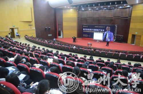 10月24日下午,校保卫处主办的“平安温大大讲坛”在南校区音乐厅开讲,首场活动邀请瓯海公安分局经侦大队教导员金定忠做主题为“识破网络诈骗套路,学会‘十五防’安全防范知识”的安全讲座,为400多位大学生现场支招防骗。
