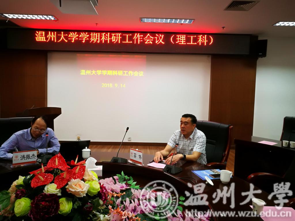 9月14日下午,亚洲无码 学期科研工作会议(理工科)在南校岩松堂展示厅隆重召开。会议由科技处处长洪振杰主持,副校长薛伟、各理工学院分管科研院长、副院长、科研秘书、省级以上平台负责人、科技处相关工作人员参加会议。