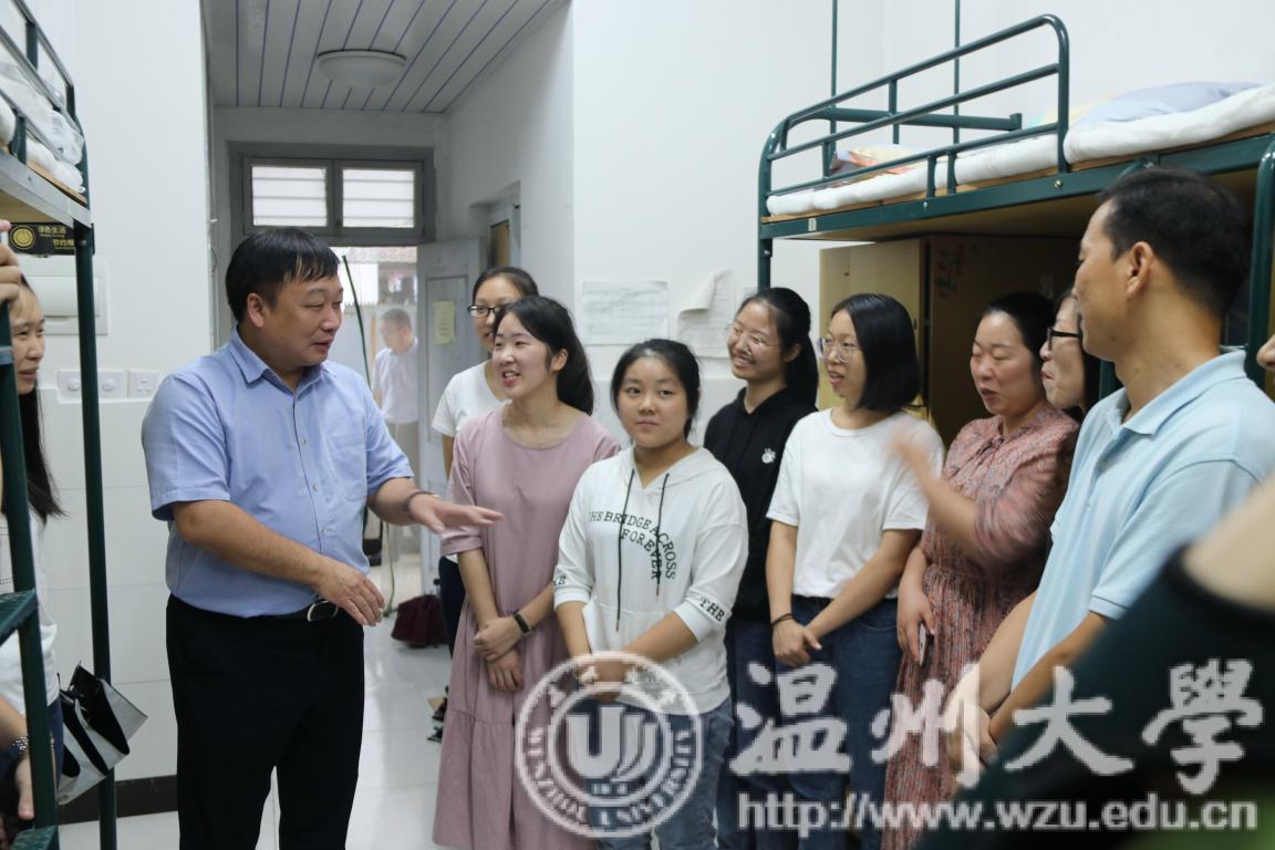9月11日下午,校党委书记林娟娟,校长赵敏,党委副书记牟德刚以及相关单位负责人一行走访学区,走进新生寝室,亲切看望2018级新生。