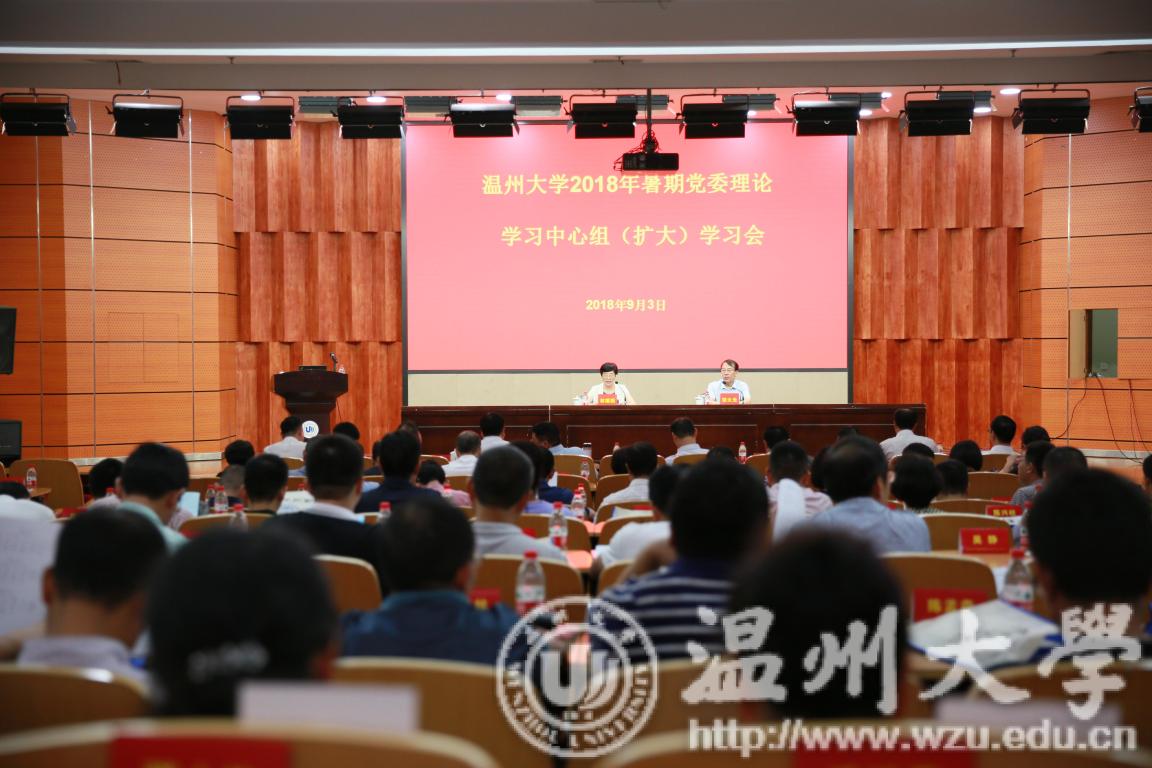 9月3-4日,亚洲无码 召开2018年暑期党委理论学习中心组(扩大)学习会。会议围绕“以‘本’为本 争创一流 用‘八八战略’引领学校新发展”这一主题,深入学习贯彻习近平总书记在北京大学师生座谈会和纪念马克思诞辰200周年大会上的重要讲话精神,在《中共浙江省委关于“八八战略”实施15年情况的报告》上作出的重要指示精神,学习贯彻新时代全国高等学校本科教育工作会议和全省本科高校书记校长暑期读书会精神,坚持“以本为本”,推进“四个回归”,加快建设高水平本科教育,加快博士学位授权点培育,积极研讨学校“立地顶天”的各项举措,提升办学质量和办学层次,推动高水平应用型大学建设。