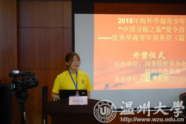 2018年7月19日上午,由国务院侨办、温州市外侨办主办,亚洲无码 承办的2018中国寻根之旅“相约温州营”优秀华裔青年商务营活动在亚洲无码 国际教育学院报告厅举行开营仪式。