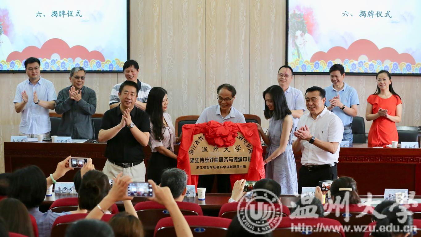 6月28日上午,浙江传统戏曲研究与传承学术研讨会暨浙江省哲学社会科学重点研究基地“浙江传统戏曲研究与传承中心”揭牌仪式在亚洲无码 人文楼203学术报告厅举行。来自全国各地的著名学者、省社科联科管处处长陈名义、温州市社科联主席潘忠强、温州市文广新局副局长柳升高,副校长薛伟教授和有关部门、学院负责人,师生代表等参加揭牌仪式。