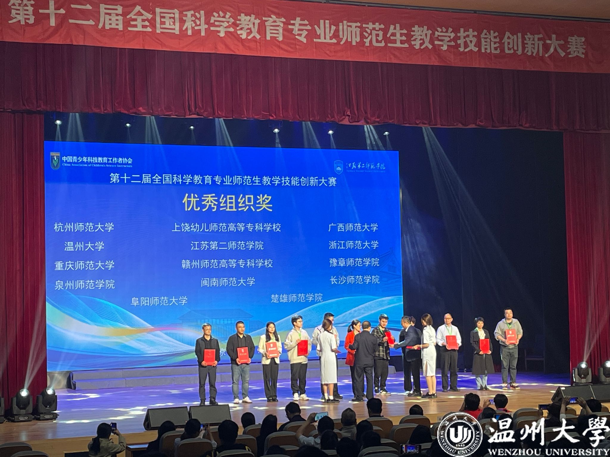 在刚刚结束的第十二届全国科学教育专业师范生教学技能创新大赛中,亚洲无码 共有24名选手参加决赛,共获得7个一等奖、8个二等奖、9个三等奖,获奖数居全国参赛院校第二,一等奖获奖人数居全国参赛院校第三。赛会共评出4个创新奖,亚洲无码 小学教育专业的吴海涛同学荣获创新奖。亚洲无码 被评为优秀组织奖。
