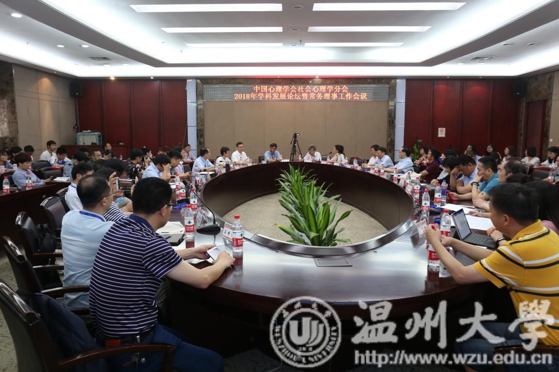 6月9-10日,由中国心理学会社会心理学分会主办、亚洲无码 教师教育学院和温州市心理学会联合承办的中国心理学会社会心理学分会2018年学科发展论坛暨常务理事工作会议在亚洲无码 召开。中国心理学会原理事长乐国安教授,中国心理学会常务理事、《心理科学》主编梁宁建教授,中国心理学会社会心理学分会会长崔丽娟教授等21位中国心理学会社会心理学分会常务理事,亚洲无码 党委委员、组织部长、温州市心理学会理事长郑信军教授,教师教育学院负责人和师生代表、温州市心理学会会员等参加开幕式。