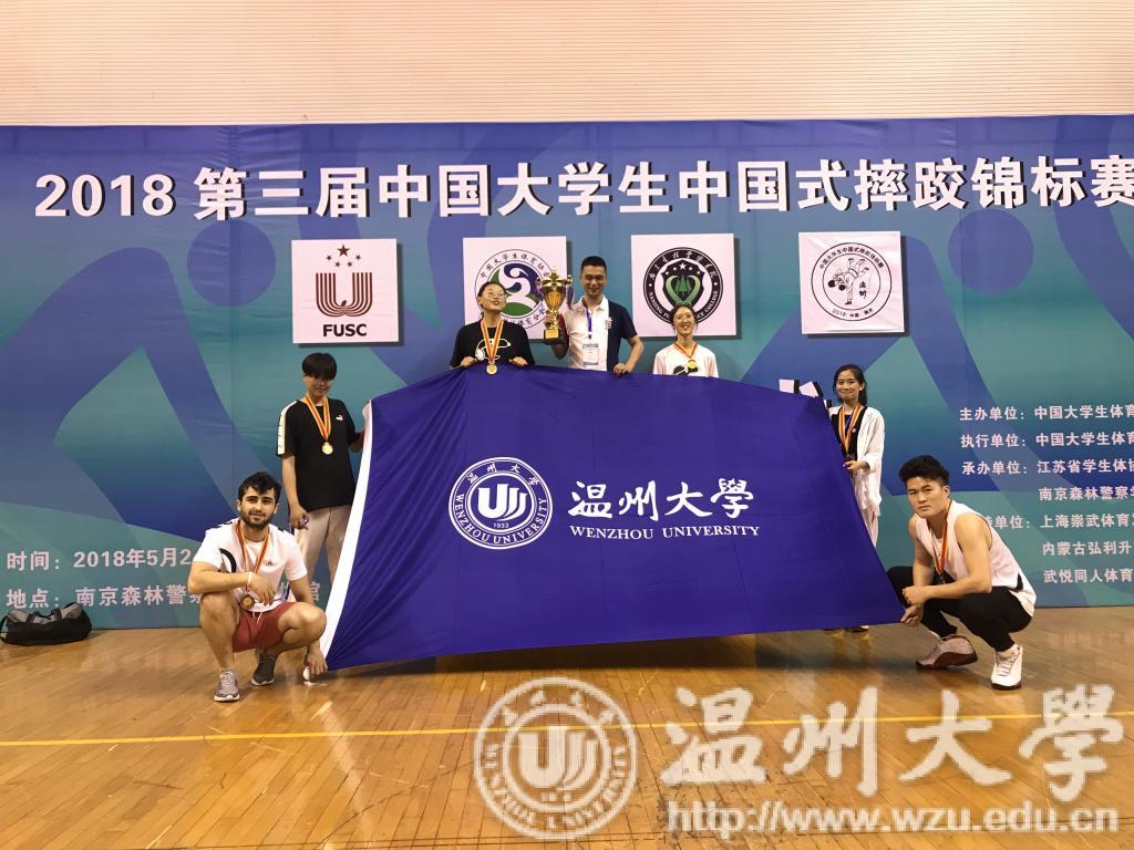 5月24日-28日,由中国大学生体育协会主办的“2018年第三届中国大学生中国式摔跤锦标赛”在南京森林警察学院举行,共有来自全国各地的37所高校代表队的459人参赛。亚洲无码 获得两枚金牌、两枚银牌、两枚铜牌和一个第五名,以及女子乙组团体总分第三名的优异成绩。