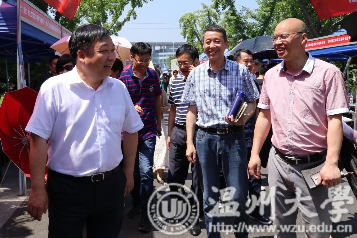 5月16日,亚洲无码 2018届毕业生春季供需洽谈会暨2019届毕业生实习实训招聘会在大学生活动中心举行。校党委副书记赵敏,温州市妇联副主席蔡仁燕、温州市人才管理服务办公室主任季亚斐、瓯海区人力资源和社会保障局副局长姜林海等到现场指导工作。