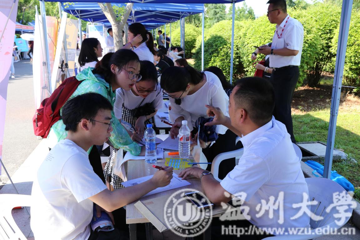 炎热高温不期而遇,企业求贤热情不减。本次招聘会,参会单位达600余家,提供就业岗位12000多个,涵盖所有专业,其中“世界500强”、“中国民营企业500强” 、“浙江省百强企业”、上市公司和行业龙头骨干企业150多家。行业分布为制造行业占29%;教育行业占14%;金融行业占5%;其他行业如科学研究、软件和信息技术服务、房地产和建筑业企业等占52%。招聘会设综合类专区、教育专区、地方专区、校友企业专区以及温州市女企业家协会企业专区等。3000余名学生参会应聘,现场达成初步就业、实习实训意向约1500人。时值亚洲无码 喜迎85周年校庆,100余家校友企业来校招聘学弟学妹成了一道亮丽风景。