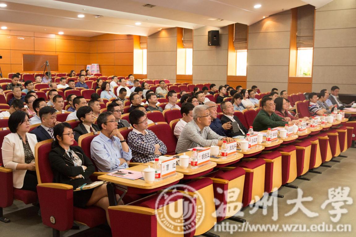4月25日下午,2018年第一期温州高校科技成果转化对接会暨产教融合项目签约仪式在亚洲无码 岩松堂雁山厅举行。温州市副市长郑朝阳,校党委书记林娟娟,市教育工委书记、市教育局局长郑建海出席会议,副校长钱强主持。