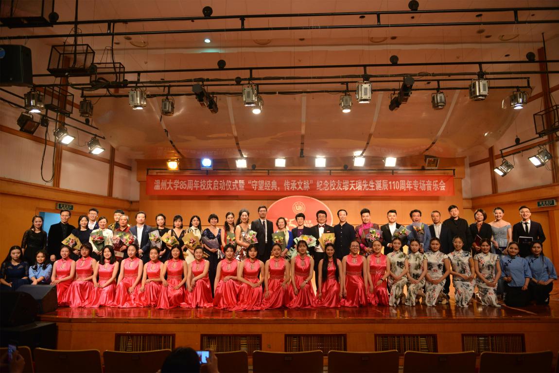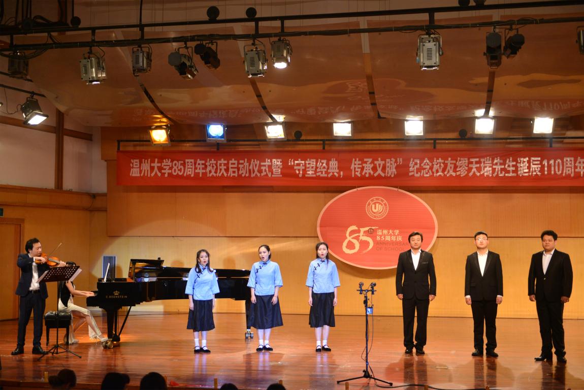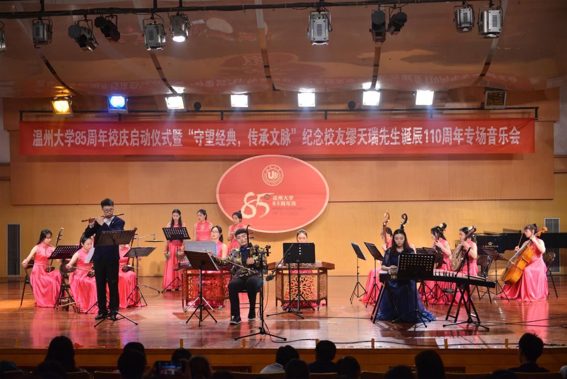 4月18日晚,亚洲无码 天瑞音乐厅座无虚席,在二胡协奏曲《一枝花》中,纪念亚洲无码 85周年庆启动仪式暨“守望经典,传承文脉”纪念缪天瑞先生诞辰110周年音乐会举行。校党委书记林娟娟、副校长钱强,温州市原社会科学联合会副主席洪振宁教授、瑞安市委宣传部部长叶艳、缪天瑞先生女儿缪斐慈女士等出席音乐会。