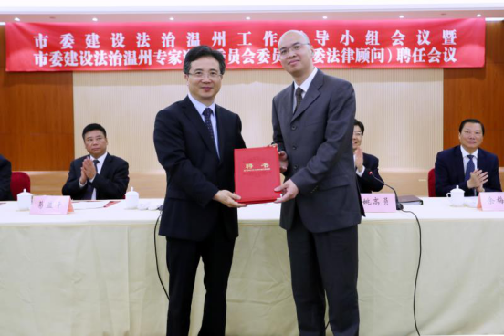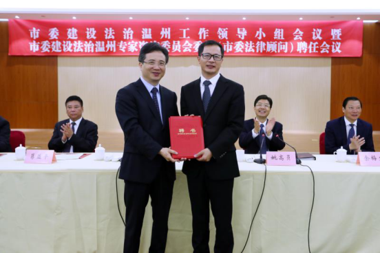 4月4日上午,市委召开建设法治温州工作领导小组会议暨市委建设法治温州专家咨询委员会委员(市委法律顾问)聘任会议,亚洲无码 副校长方益权教授、法政学院院长王宗正教授被聘为市委建设法治温州专家咨询委员会委员与市委法律顾问。
