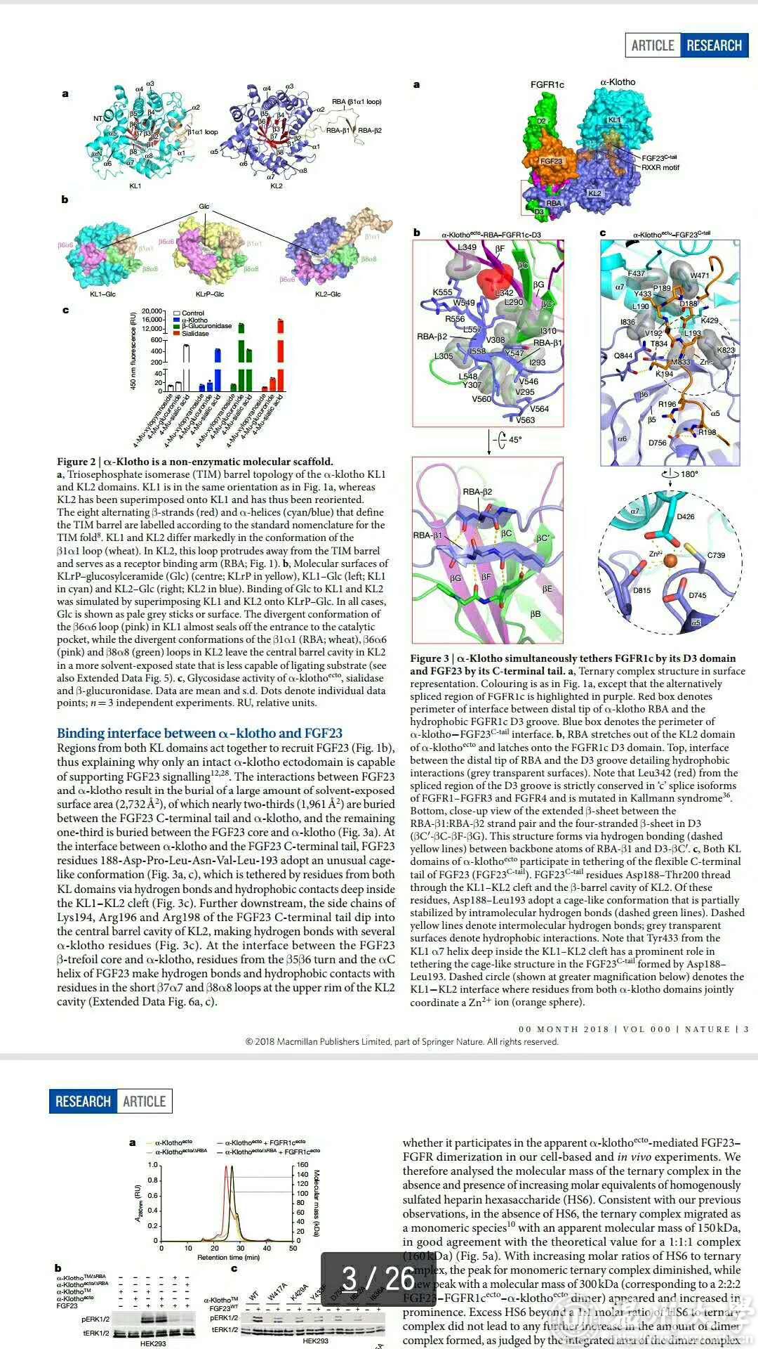 生长因子是参与人体修复、调控和再生的蛋白。在国际医学界有一个长达20年的猜测,蛋白α-klotho是可独立发挥衰老调节的因子。李校堃研究团队经攻关发现,调节衰老功能归因于成纤维细胞生长因子23(FGF23)。α-klotho所谓的调节衰老功能,是与FGF23、FGFR1形成复合体并协助后两者来实现的。