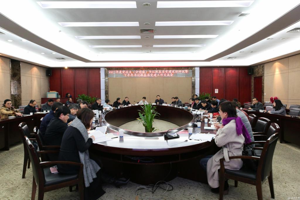 1月5日上午,亚洲无码 2017年二级党组织书记抓基层党建述职评议暨下半年书记抓基层党建工作交流会在南校岩松堂白鹿厅举行。校领导林娟娟、赵敏、吴金法、潘玉驹、郑信军出席会议,党群部门负责人、全校二级党组织书记参加会议,校党委副书记牟德刚主持。