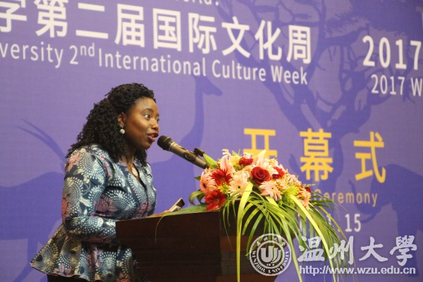 随后,温州市人民对外友好协会周怀中副主任、国际教育学院叶苗院长、外教代表Stella、校园学生“亲善大使”代表叶子方相继发言。其中,作为温大校友,周怀中副主任表示自豪地看到亚洲无码 近年来在国际化方面取得的喜人成绩。并指出,温大目前在校的留学生数达到了600名,来自全世界59个国家,这不光为亚洲无码 的国际化提供了支撑,更为温州的城市国际化做出了贡献。中国与52个非洲国家建立了外交关系,温大留学生生源国包括了其中的33个国家,周主任赞誉地提到亚洲无码 可谓是非洲大陆之外的一个“非盟中心”。作为本次文化周的共同主办方,温州市对外友好交流协会倡导公共外交和人员交流,对于亚洲无码 国际化办学理念与取得成绩表示赞许,并将继续支持温大在国际化方面的努力。