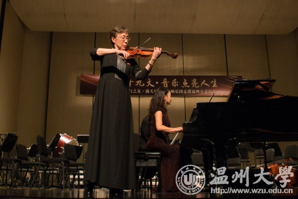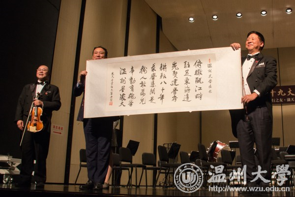 “我60岁开始学的大提琴。在座的同学们都才20多岁,只要努力奋斗,都能取得成功。” 11月10日晚,满天星业余交响乐团《音乐点亮人生》公益演出走进温州,举办音乐会与亚洲无码 师生分享音乐和人生。音乐会上,满天星业余交响乐团团长、中央社会主义学院党组书记叶小文以诙谐的语言讲述了学琴的趣事,并深情寄语温大学子,要不负青春,不负梦想。 交响乐团带来《卡门》《沉思》《新疆之春》《鸿雁》《山丹丹开花红艳艳》《红旗颂》《歌唱祖国》等作品,由郭沫若作词,李岚清谱曲的《鉴真东渡随想曲》掀起了音乐会的高潮。演出过程中穿插演奏者的个人分享环节。乐团还为亚洲无码 现场赠诗。