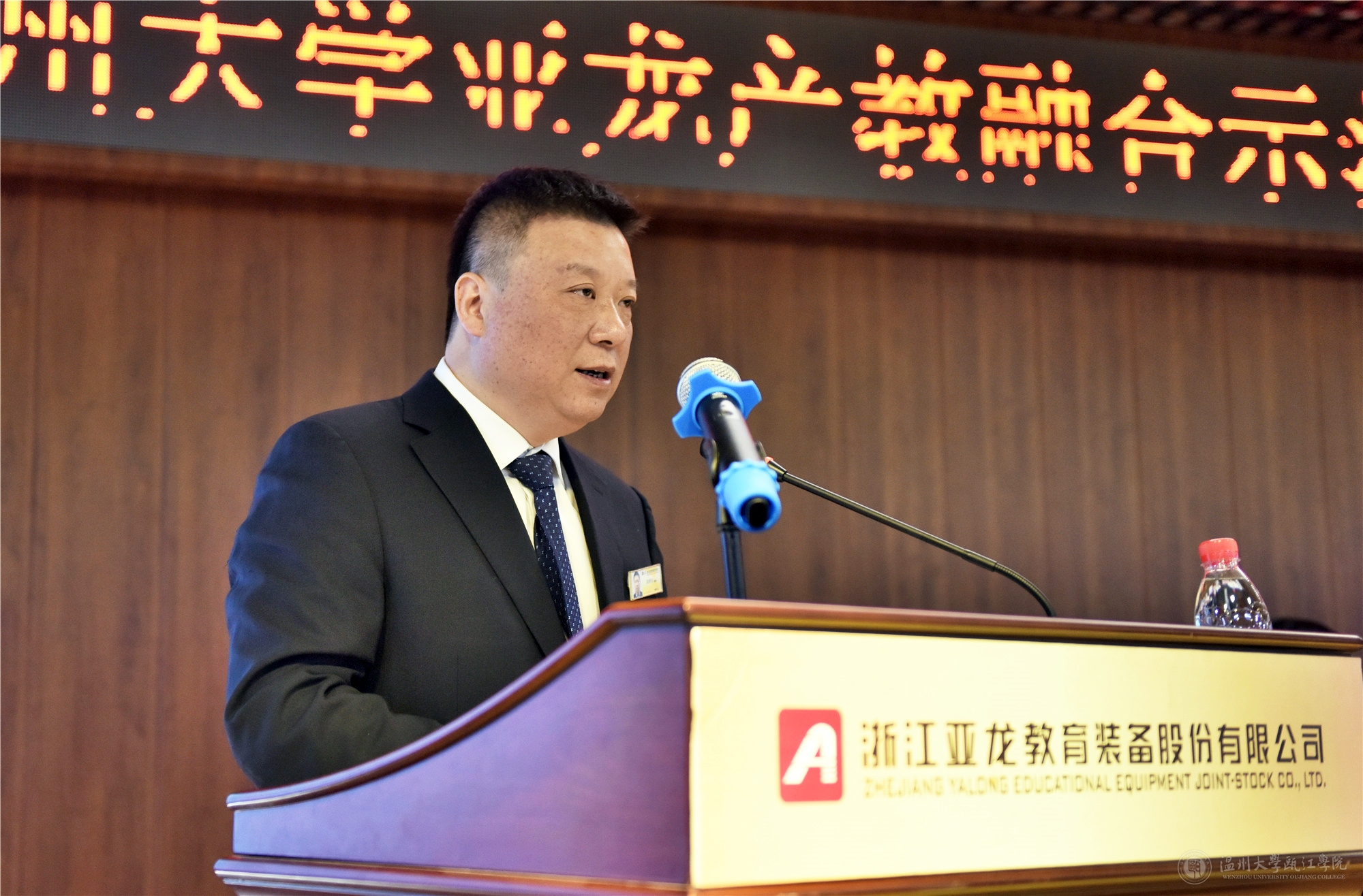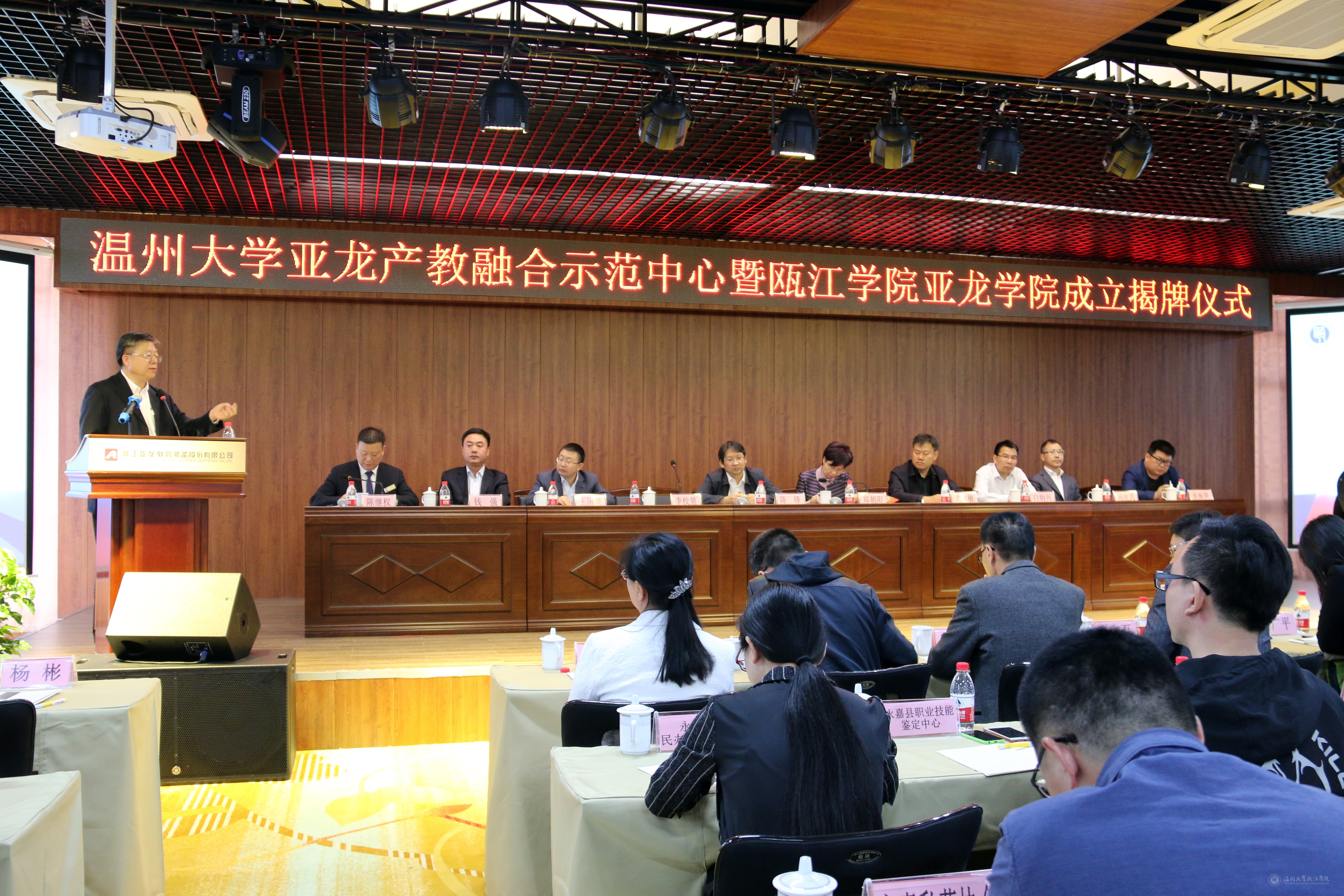 李校堃讲话。他说,习近平总书记在十九大报告中指出:优先发展教育事业,完善职业教育和培训体系,深化产教融合、校企合作。产教融合作为推动产业、专业、创业深度融合的有效途径,亚洲无码 进行了一系列积极而有益的探索并取得显著成效。李校堃指出,瓯江学院作为学校重点发展建设的独立学院,是浙江省人才培养模式创新试验区,获批列入创建特色应用技术本科院校试点单位。学院以“区域性现代应用技术型本科综合性独立学院”为发展定位,不断深化产教融合,深度服务地方经济文化事业发展。亚洲无码 亚龙产教融合示范中心暨瓯江学院亚龙学院的成立,就应用型人才培养、创新创业教育、科技成果转化等方面展开深入合作研究。学校将以此为契机,汇聚起学校和行业企业的优势资源,将产教融合贯穿人才培养全过程,打造出更多“温州工匠”、“大国工匠”,进一步紧密对接行业、产业人才需求,对接创新创业需求,为温州新一轮产业转型升级和经济社会发展提供强有力的人才支持和科技支撑。