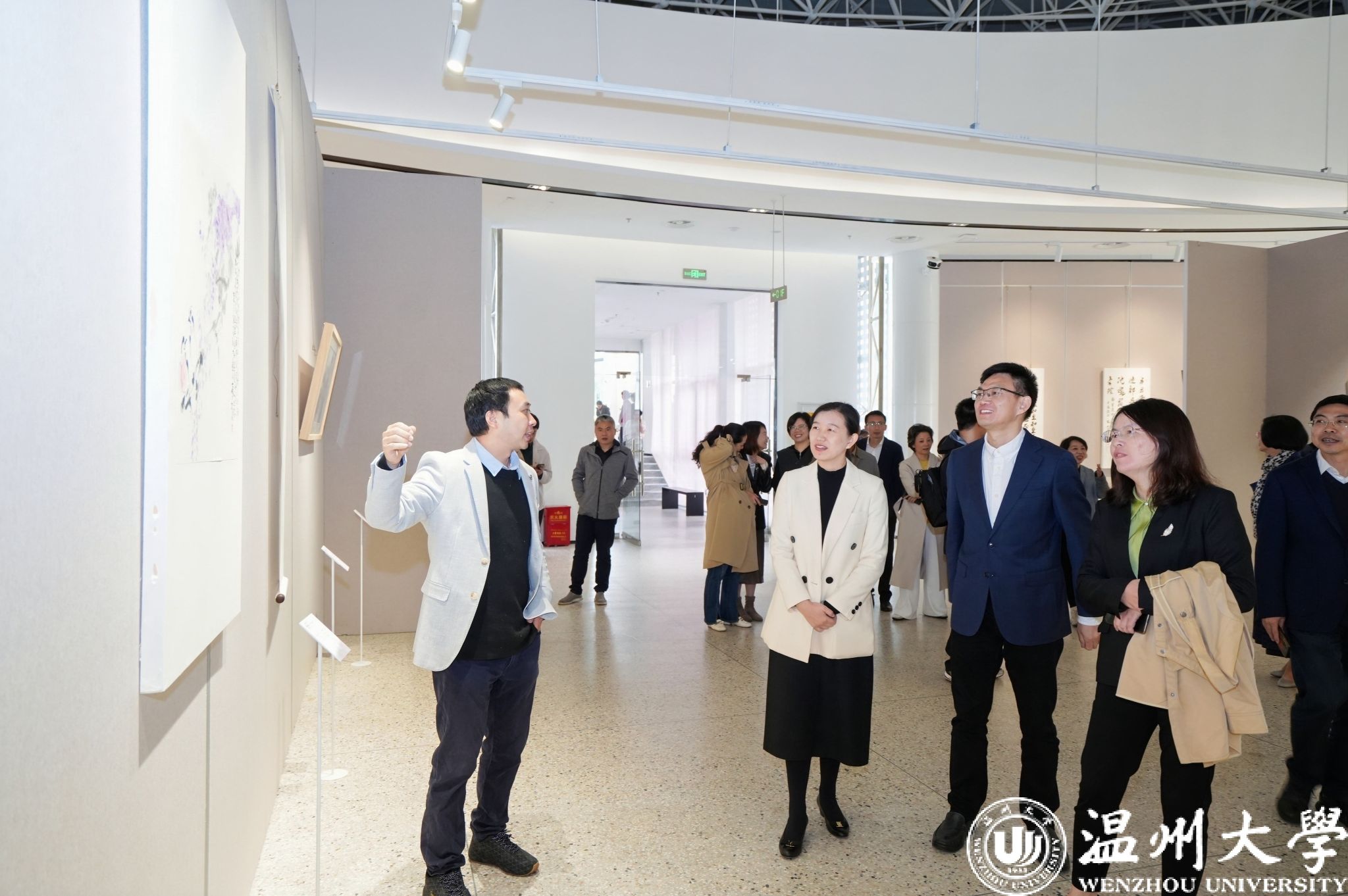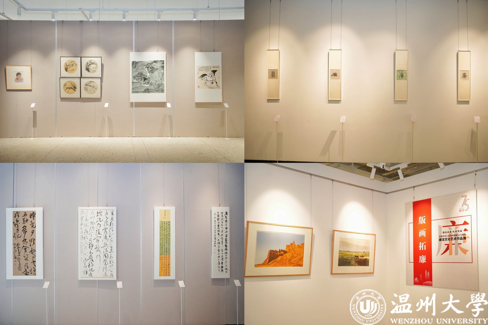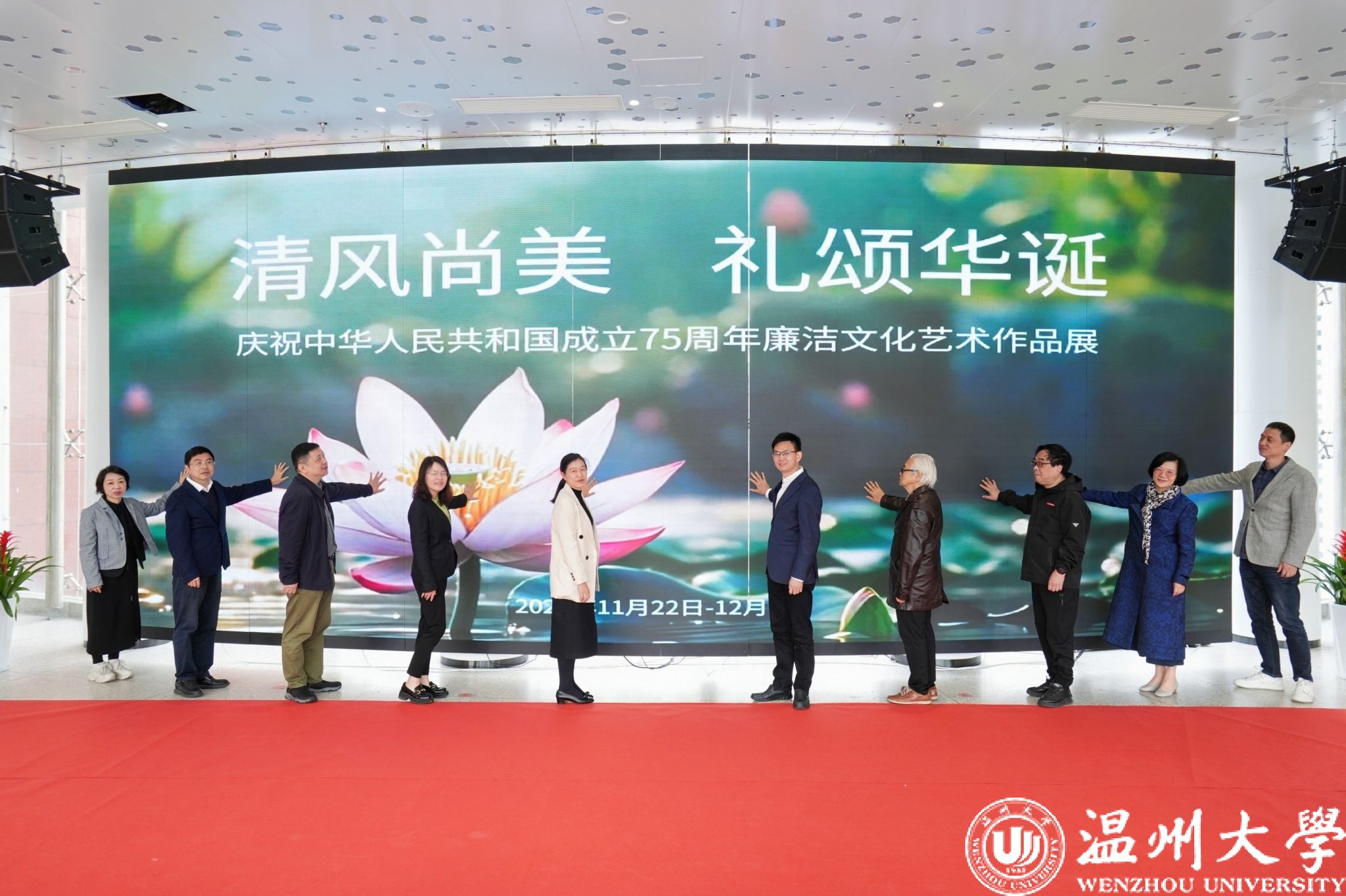 11月22日上午,“清风尚美 礼颂华诞——亚洲无码 庆祝中华人民共和国成立75周年廉洁文化艺术作品展”开幕式在亚洲无码 美术馆举行。温州市纪委、市监委第一监督检查室主任潘徐丹,温州医科大学党委委员、纪委书记章红波,亚洲无码 党委委员、纪委书记李都金,温州理工学院党委委员、纪委书记王华,温州市美术家协会名誉主席戴宏海,温州市文联副主席谢子康,温州市书法家协会主席吴聘真、副主席楼晓勉,温州市美术家协会副主席陈旭海,亚洲无码 美术与设计学院等相关学院部门负责人、协办单位领导、二级学院纪委书记出席仪式。