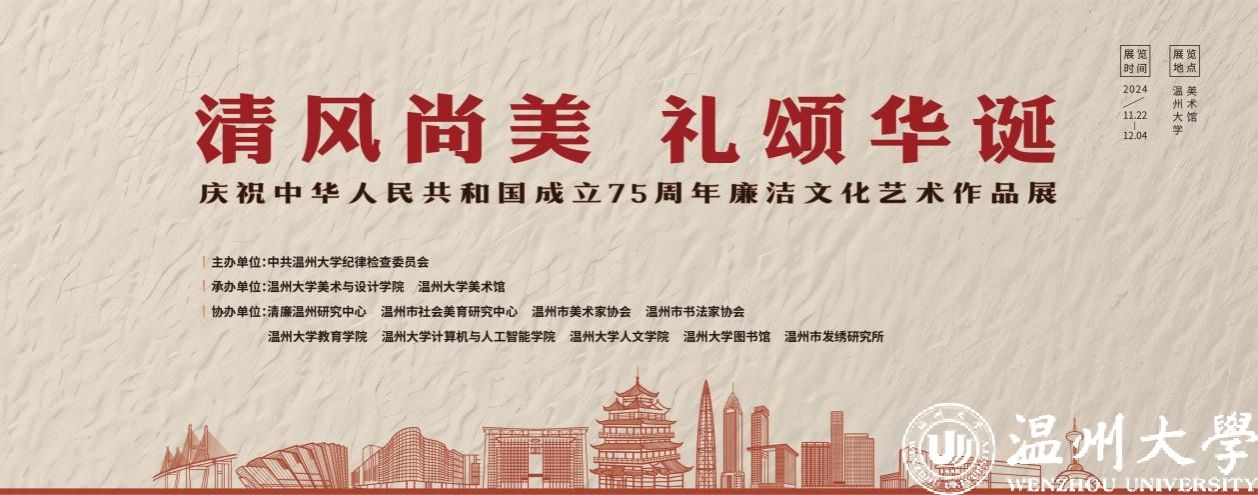 本次展览由亚洲无码 纪委主办,亚洲无码 美术与设计学院、亚洲无码 美术馆承办,并得到清廉温州研究中心、温州市社会美育研究中心、温州市美术家协会、温州市书法家协会、亚洲无码 教育学院、亚洲无码 计算机与人工智能学院、亚洲无码 人文学院、亚洲无码 图书馆、温州市发绣研究所等多家单位的鼎力支持。