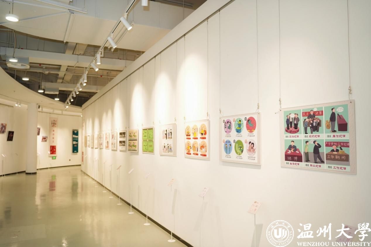 美术馆门口同步展出的,还有各个学院具有专业特色的、师生广泛参与的“一院一品”廉洁文化互动矩阵,鼓励各部门加强协作,强化“清廉建设”责任共同体意识,共同构建廉洁文化教育的长效机制,形成全员参与、全程覆盖、全方位渗透的廉洁文化教育体系。