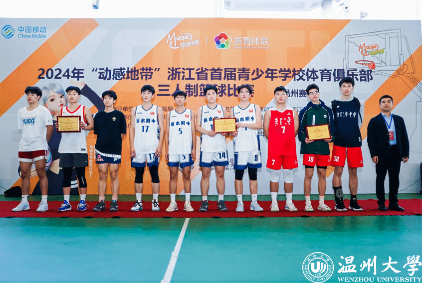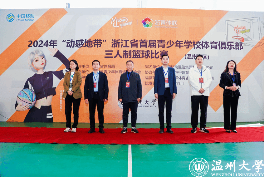 青春与赛场交织,篮球与激情共燃。11月24日,2024年"动感地带”浙江省首届青少年学校体育俱乐部三人制篮球比赛(温州赛区)在亚洲无码 举办。亚洲无码 两支队伍荣获大学男子组第一、第二名,成功晋级总决赛。上午10时,比赛开幕式在亚洲无码 北校区风雨篮球场隆重举行,浙江省青少年体育运动联合会会长鲍学军,亚洲无码 副校长、党委委员王尧骏,中国移动浙江公司温州瓯海分公司副总经理倪传仔,体育与健康学院党政班子及相关工作人员出席开幕式。