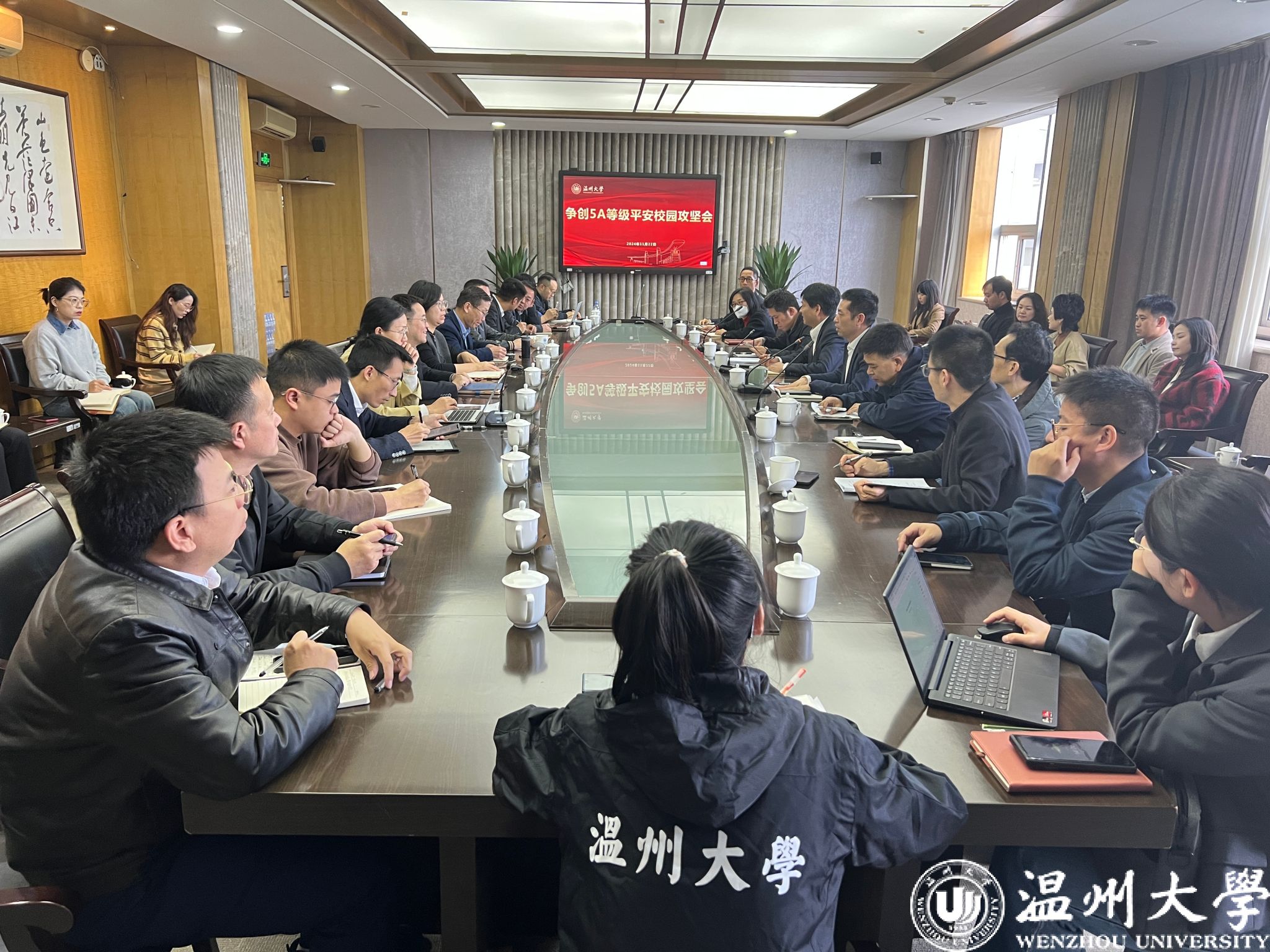 11月22日下午,亚洲无码 召开5A等级平安校园攻坚会。校党委副书记庄兴忠出席会议并讲话。各学院、部门相关负责人参加会议。