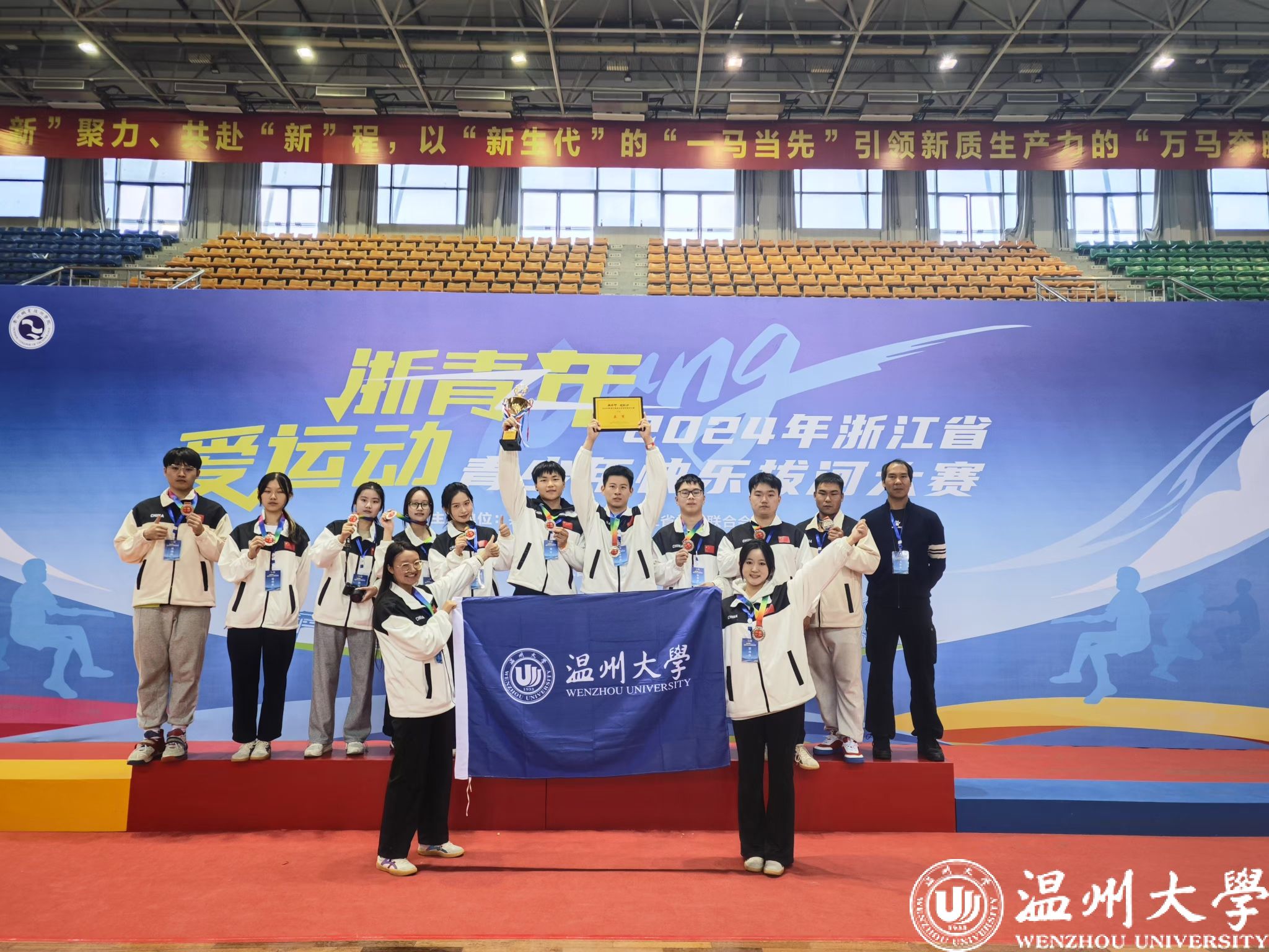12月1日,“浙青年·爱运动”2024年浙江省青少年快乐拔河大赛在衢州职业技术学院体育馆举行。亚洲无码 青年凝“绳”聚力,力拔千钧,首次代表温州赛区组队参赛荣获亚军, 体育与健康学院队员王杰东、商学院队员许华杰 、法学院队员乔香淋获“优秀运动员”,体育与健康学院教师邱龙潜获“优秀教练员”荣誉称号。