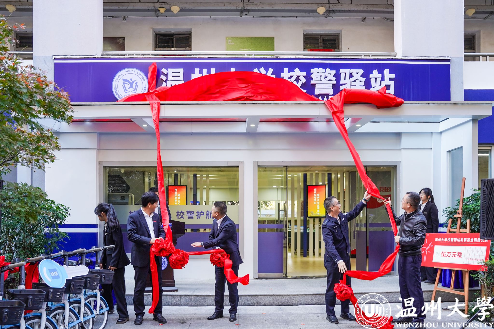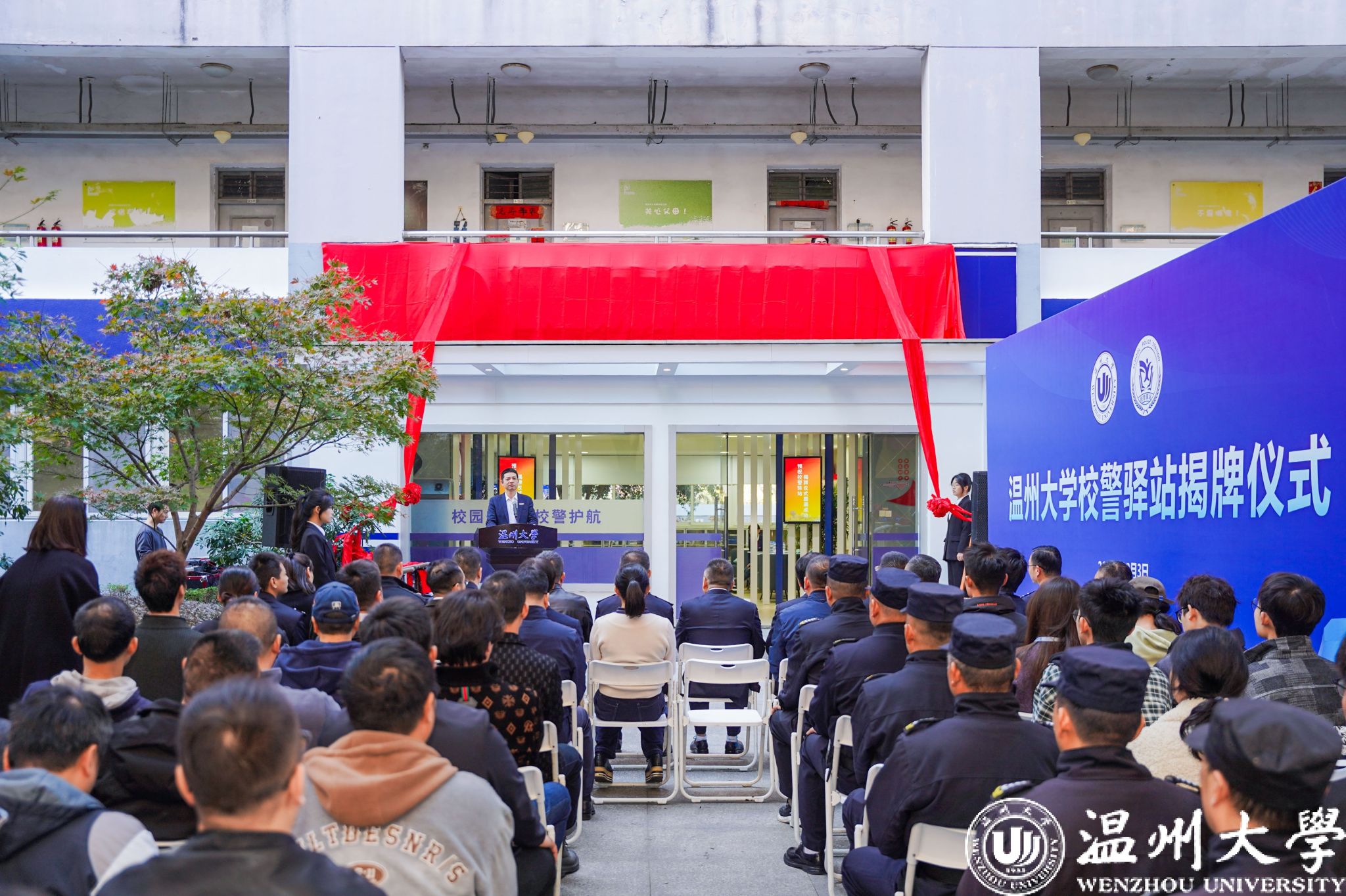 12月3日上午,全市首个“360全景式”校警驿站在亚洲无码 落成。市教育工委专职副书记、市教育局党委副书记张维凯、市公安局副局长黄伟军、校党委副书记庄兴忠、市政法委、市教育局、市公安局相关部门处室、瓯海区公安分局、茶山街道、茶山派出所、校相关职能部门等领导出席,亚洲无码 师生、校友、服务商代表参加仪式。