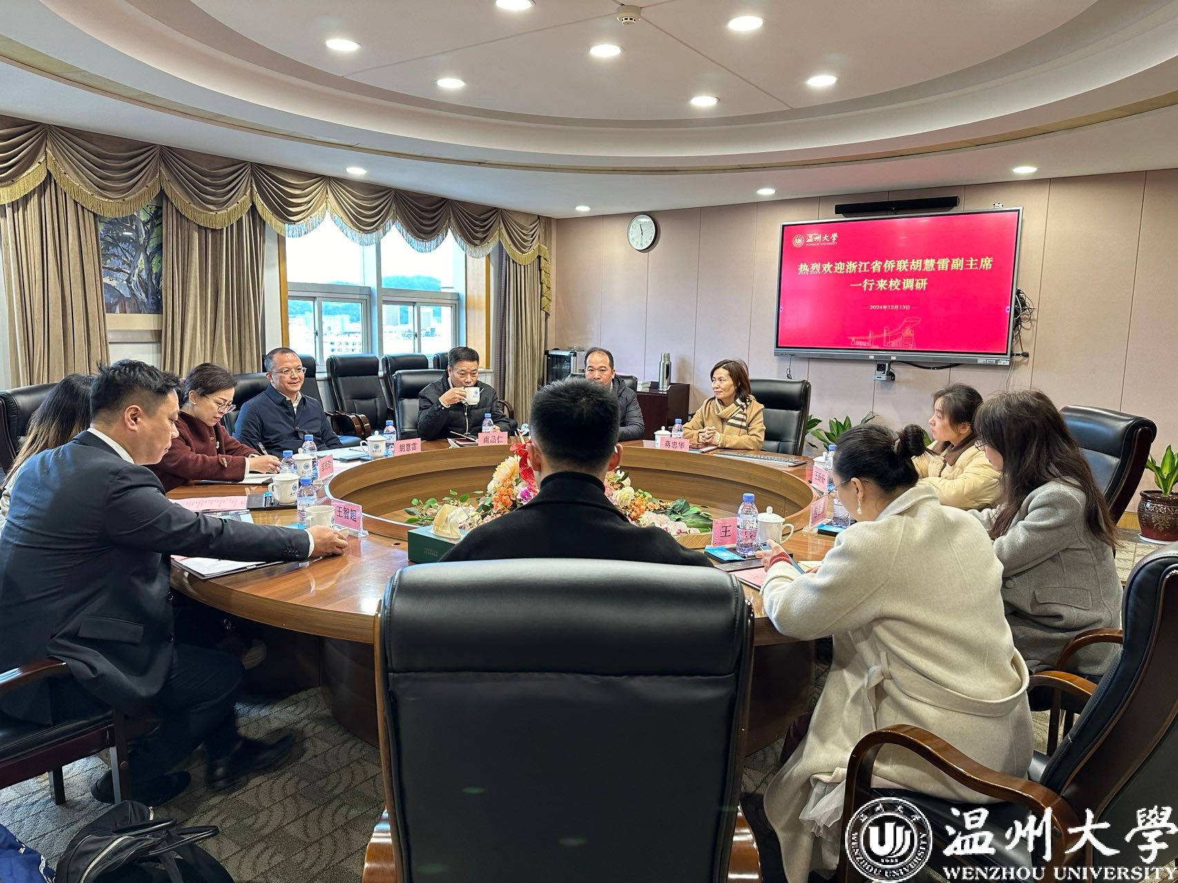 12月13日上午,浙江省侨联党组成员、副主席胡慧雷一行来访亚洲无码 ,开展华文教育工作专题调研。浙江省侨联文化交流和信息传播部部长邹玲玲、温州市侨联主席南品仁陪同调研。亚洲无码 副校长、党委委员王舜出席座谈会。意大利罗马中华语言学校校长蒋忠华,西班牙博思语言学校校长潘丽丽,威尼斯屿你国际教育中文学校校长王智超以及华侨学院相关教师等参加座谈。