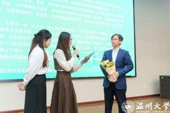 在“读懂先贤”环节,播放了苏步青和黄溯初先生等教育先贤的事迹,激励同学们严谨治学,掌握深厚学识;在“读懂自己”环节,校师范技能竞赛队成员们分享了备赛过程中的种种挑战与收获;在“读懂自己”环节,成员们强调了读懂同行伙伴的重要性,通过生动事例展现了备赛过程中的团队协作与相互支持;在“读懂老师”环节,各组选手代表逐一登台,他们手捧亲笔书写的信件与绚烂的鲜花,向老师们表达最真挚的感激之情。
