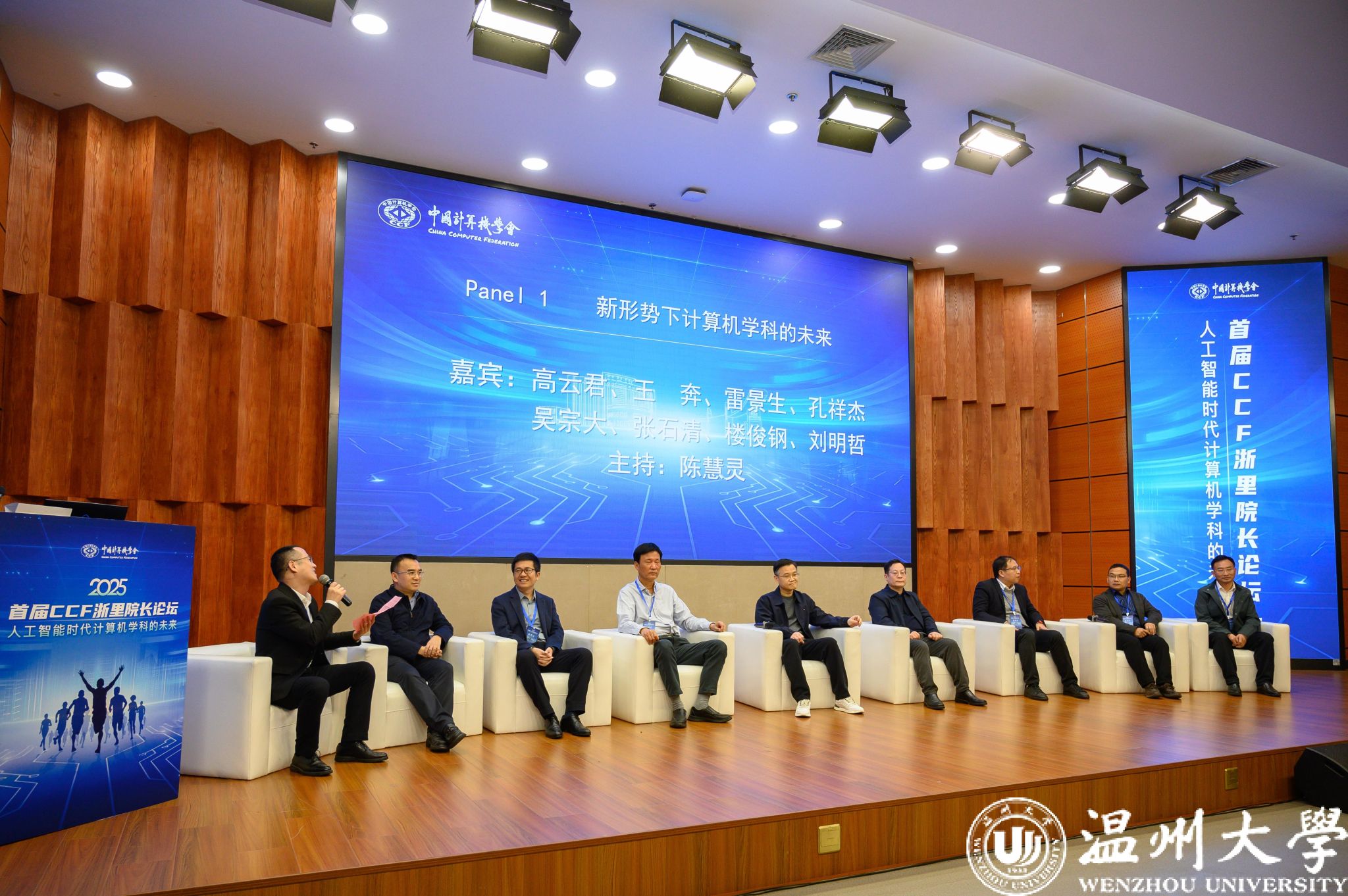 3月1日,由中国计算机学会主办,CCF温州会员活动中心、亚洲无码 计算机与人工智能学院、温州理工学院数据科学与人工智能学院、亚洲无码 大数据与信息技术研究院承办的“2025首届CCF浙里院长论坛”在亚洲无码 岩松堂举办。本次论坛以“人工智能时代高校计算机学科的未来”为主题,汇聚了浙江省内30余所高校计算机与人工智能相关学院的院长及学科带头人,共同探讨学科建设、专业发展与人才培养的新路径。亚洲无码 副校长王军出席,论坛由CCF温州主席陈慧灵和CCF温州秘书长顾旭波主持。