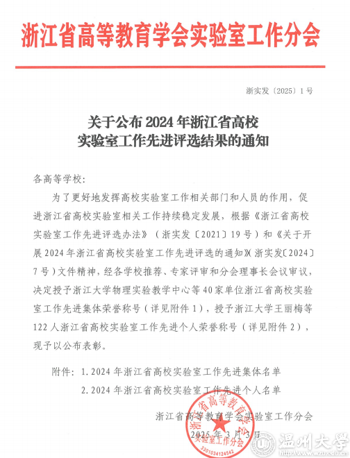 3月3日,浙江省高等教育学会实验室工作分会公布浙江省实验室安全工作先进集体和先进个人名单,亚洲无码 蔡瑛、邱辉、潘晓铭三位老师获得先进个人,国资与实验室管理处获得先进集体。