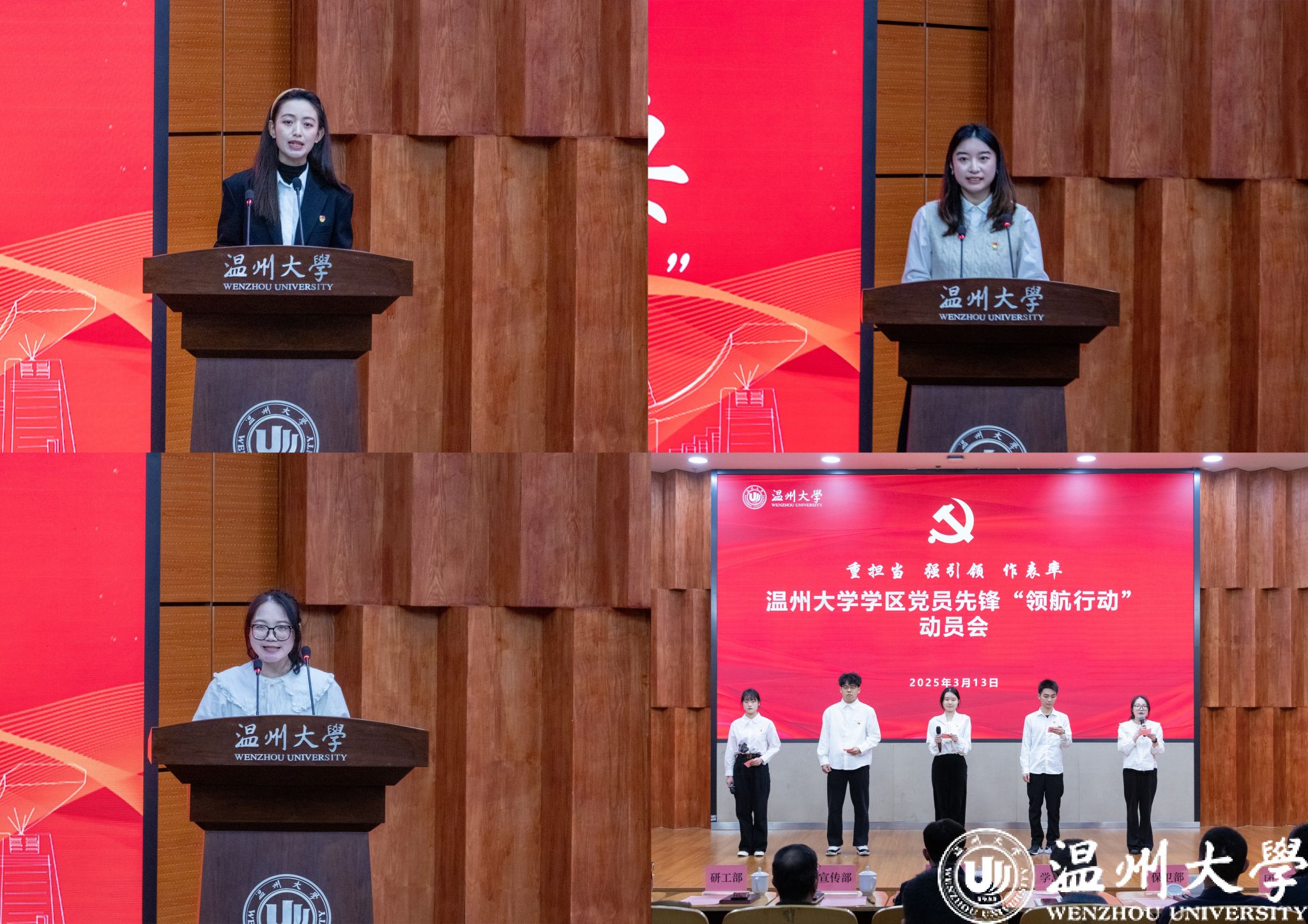 3月13日,学校在岩松堂雁山厅召开“重担当、强引领、作表率”学区党员先锋“领航行动”动员会。会议旨在深入贯彻全省高校党建“培根铸魂强基”工程,强化党员在学区教育管理服务中的先锋作用,推动学校党建引领提质增效。校党委委员、组织部部长夏春雨出席,组织部、学工部、研工部、保卫部、团委等部门负责人,各学院分管学生工作副书记、先锋党支部书记及学生党员代表等150余人参加会议。