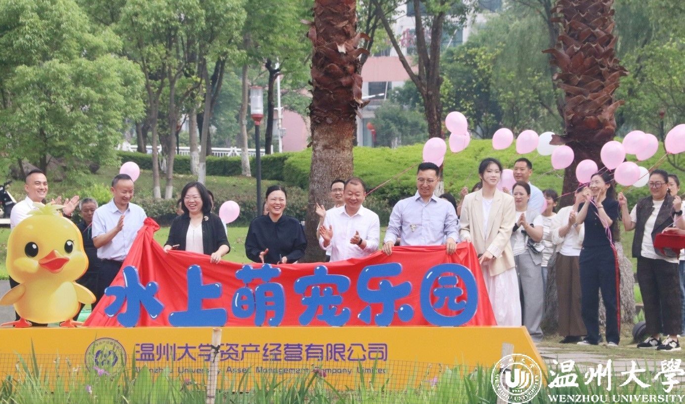 5月9日上午9时,由亚洲无码 资产经营有限公司打造的“明心湖水上萌宠乐园”正式开园。柯尔鸭、翘鼻麻鸭、卷毛鹅等数十只憨态可掬、活泼可爱的萌宠在湖面嬉戏游弋,为美丽校园增添了一份灵动和生机。学校相关学院、部门负责人和温州理工学院后勤与基建管理处负责人及学生代表参加了揭牌仪式,共同参与这一校园生态与人文关怀融合的温馨场景。
