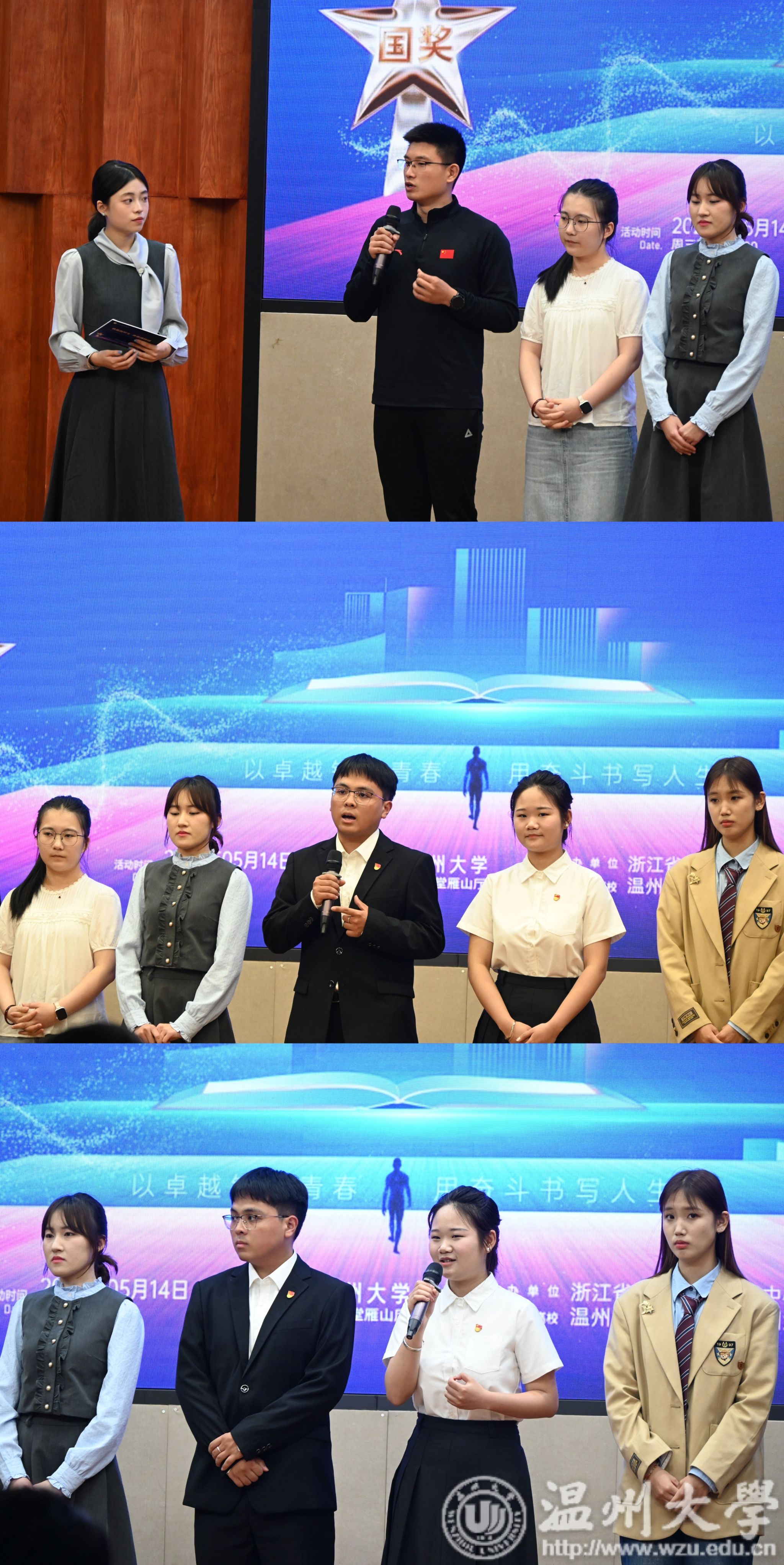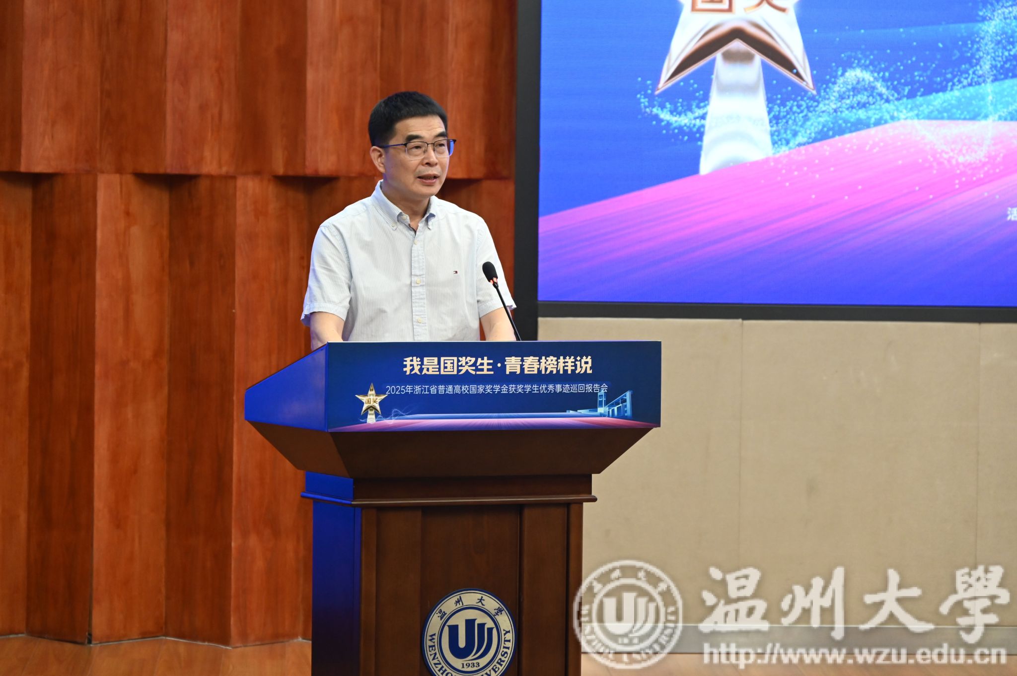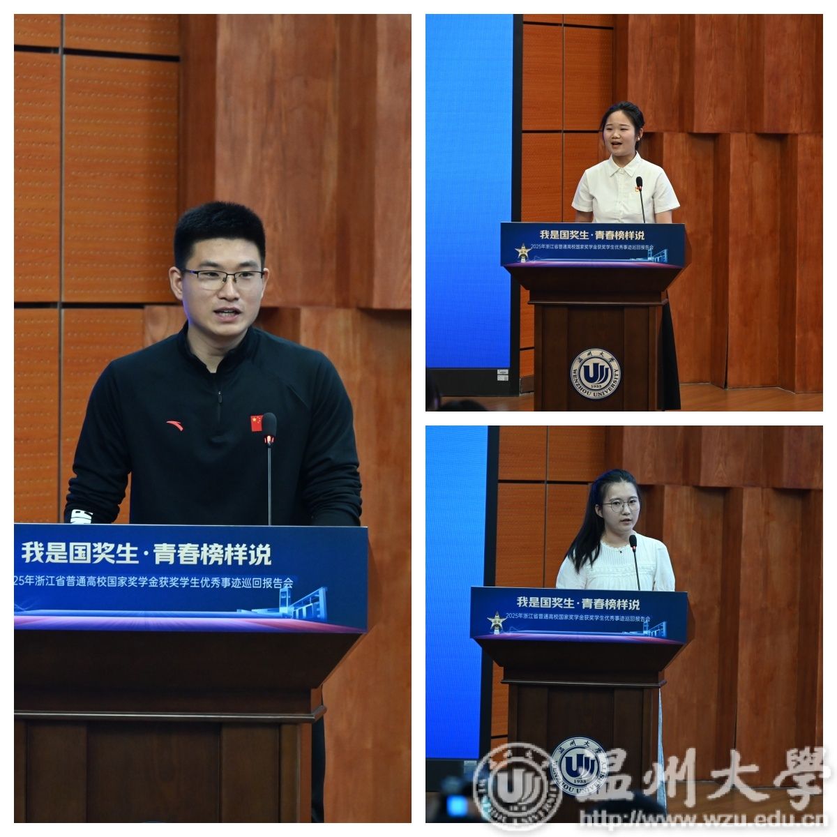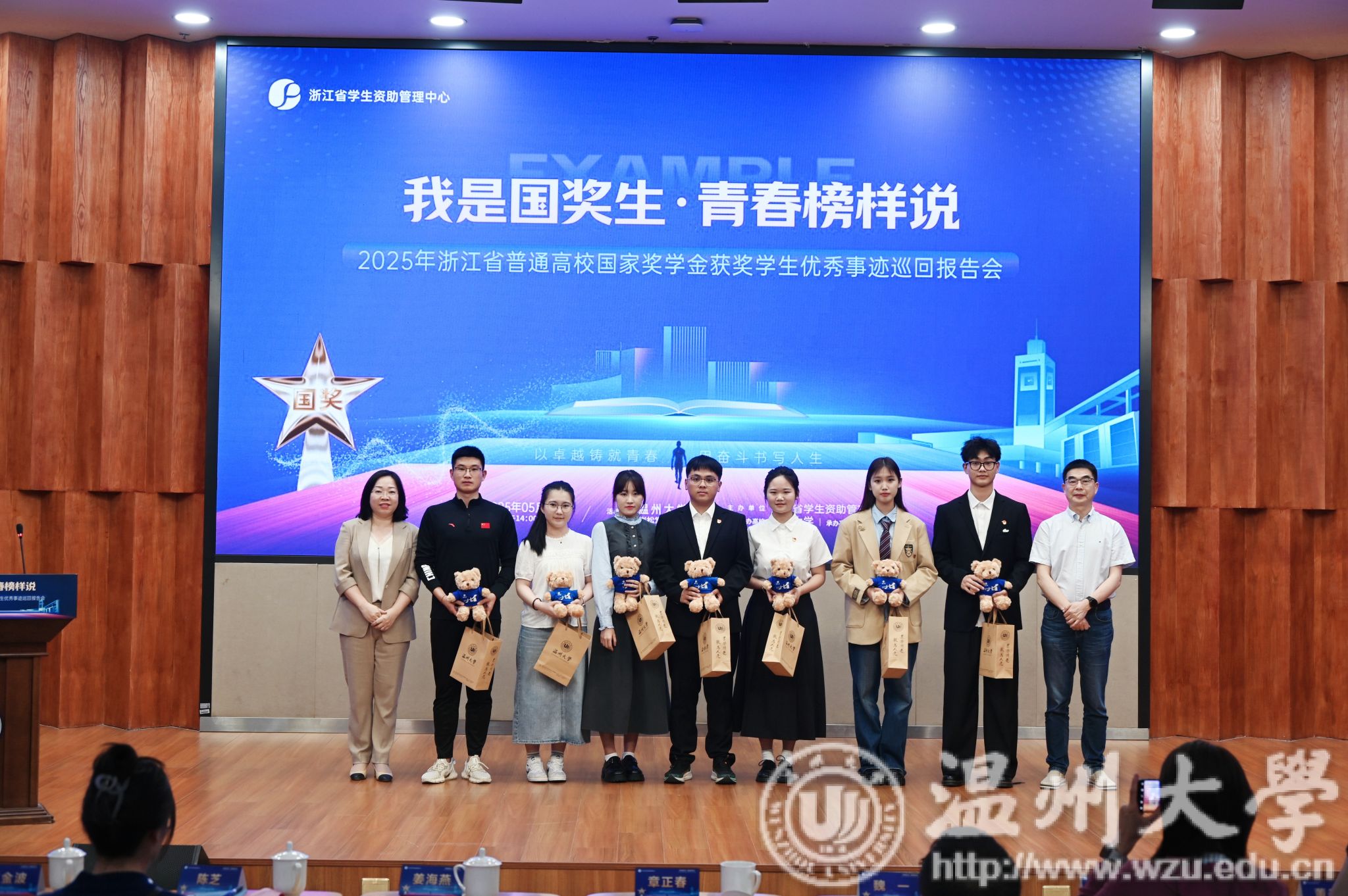 5月14日下午,由浙江省学生资助管理中心主办,亚洲无码 承办的“我是国奖生・青春榜样说”2025年浙江省国家奖学金获奖学生优秀事迹巡回报告会在亚洲无码 举行。浙江省学生资助管理中心党委委员、副主任章正春与衢州学院、温州医科大学、湖州学院、绍兴文理学院元培学院、温州理工学院、杭州医学院等7所高校的报告团成员、师生代表共同见证7位国奖生的青春答卷。