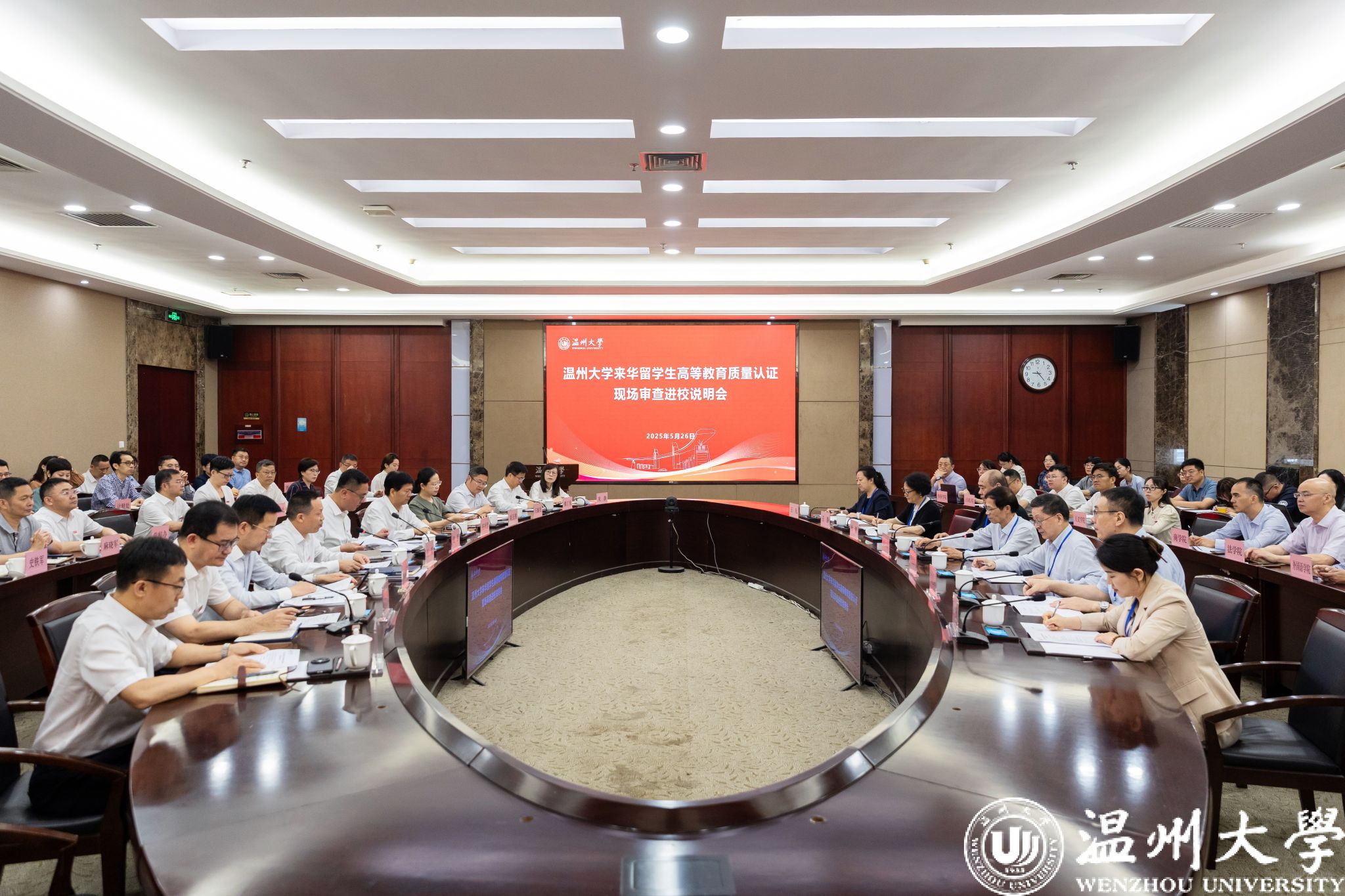 5月26日至27日,中国教育国际交流协会(以下简称“交流协会”)对亚洲无码 开展来华留学生高等教育质量认证现场审查。教育部督导局原副局长、认证工作委员会副主任林仕梁,浙江省教育厅国际合作与交流处一级调研员杜健,认证专家组组长程爱民,组员张晓涛、王静、兰雪萍,交流协会跨境教育质量保障部高级项目主管王凡到校,开展来华留学生高等教育质量认证(初次认证)现场审查。