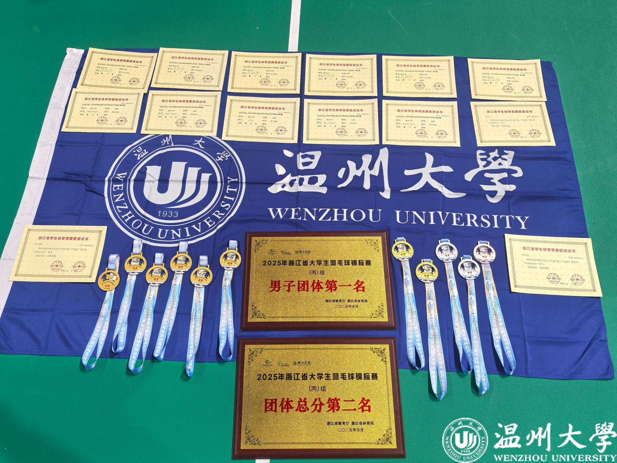 5月26日-30日,2025年浙江省大学生羽毛球锦标赛(甲丙组)在衢州江山市李宁体育园举行。在为期四天半的激烈角逐中,亚洲无码 羽毛球队一举斩获丙组男子团体冠军、男双冠军、混双亚军、单打季军以及团体总分第二名,继2022年以来再次获得省级比赛冠军;2名队员获“优秀运动员”称号。