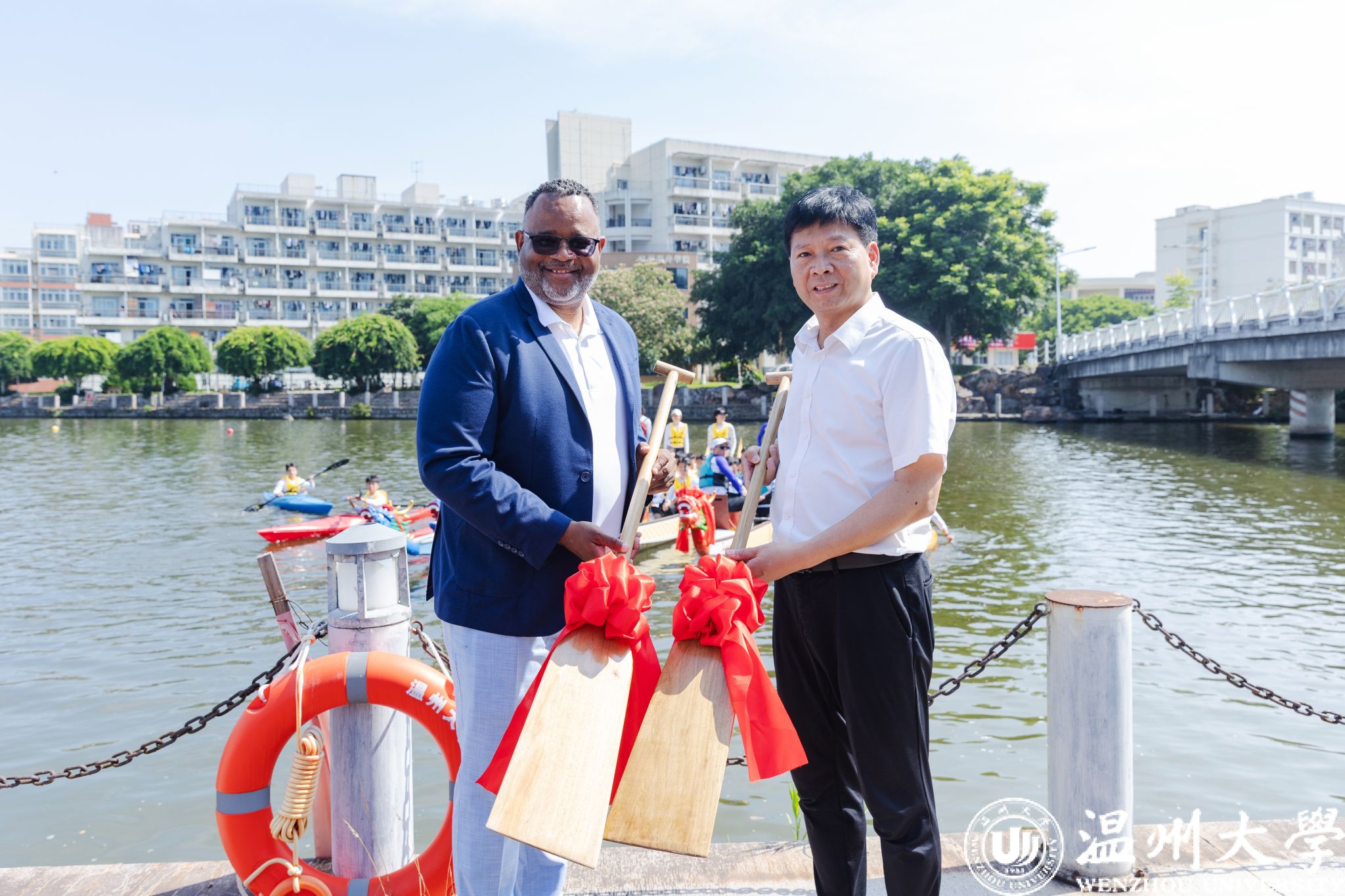 雷波列特一行观摩了亚洲无码 龙舟队训练,亚洲无码 赠送了象征团结拼搏、同舟共济精神的龙舟用桨。