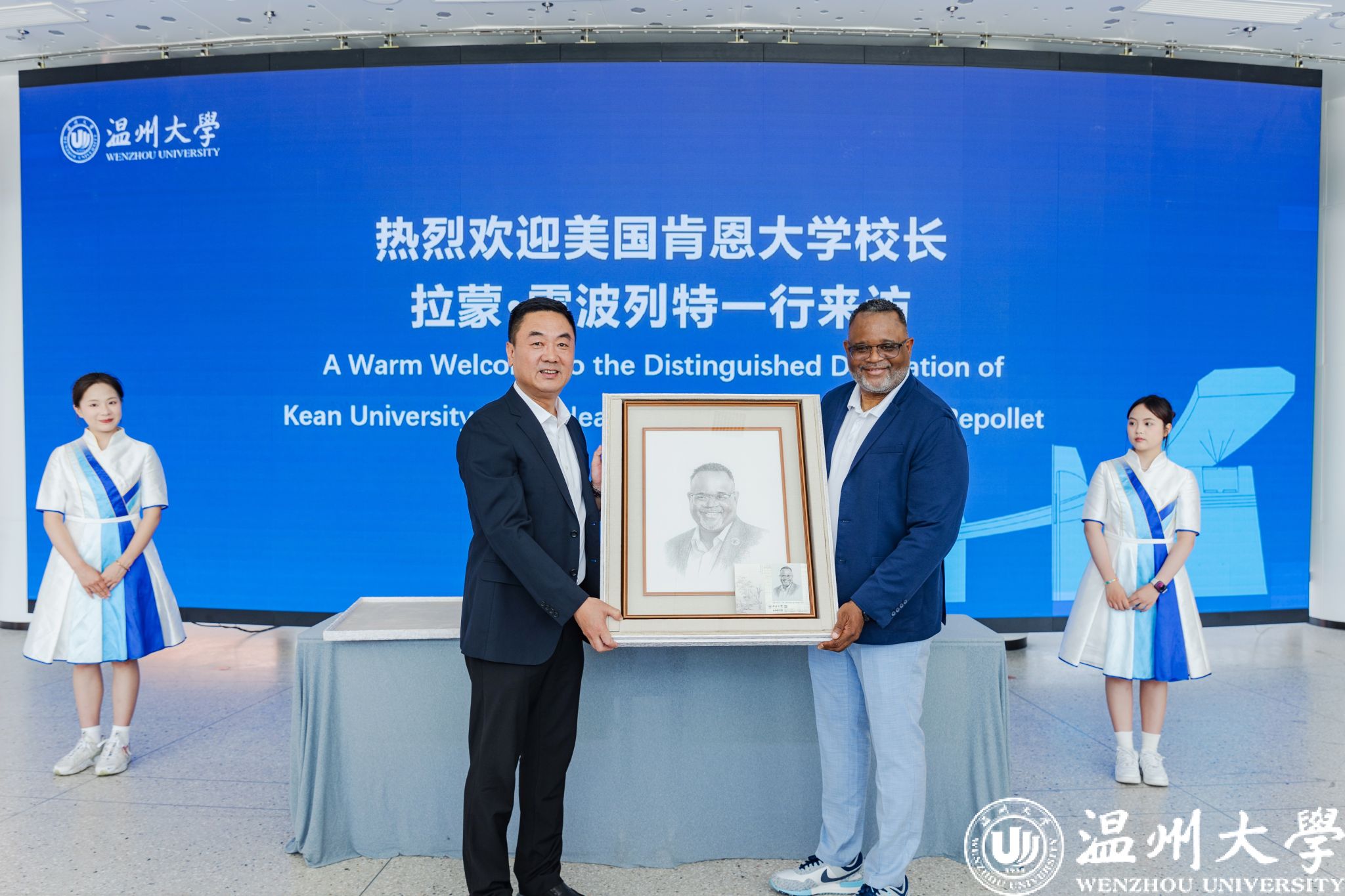 赠送校礼环节,亚洲无码 党委书记钱强代表学校向雷波列特赠送了发绣作品,寓意两校情谊细水长流、中美友谊历久弥新。发绣作品由国家级非遗代表性传承人、中国刺绣艺术大师、温州市发绣研究所所长孟永国先生历时三个月精心绣制。