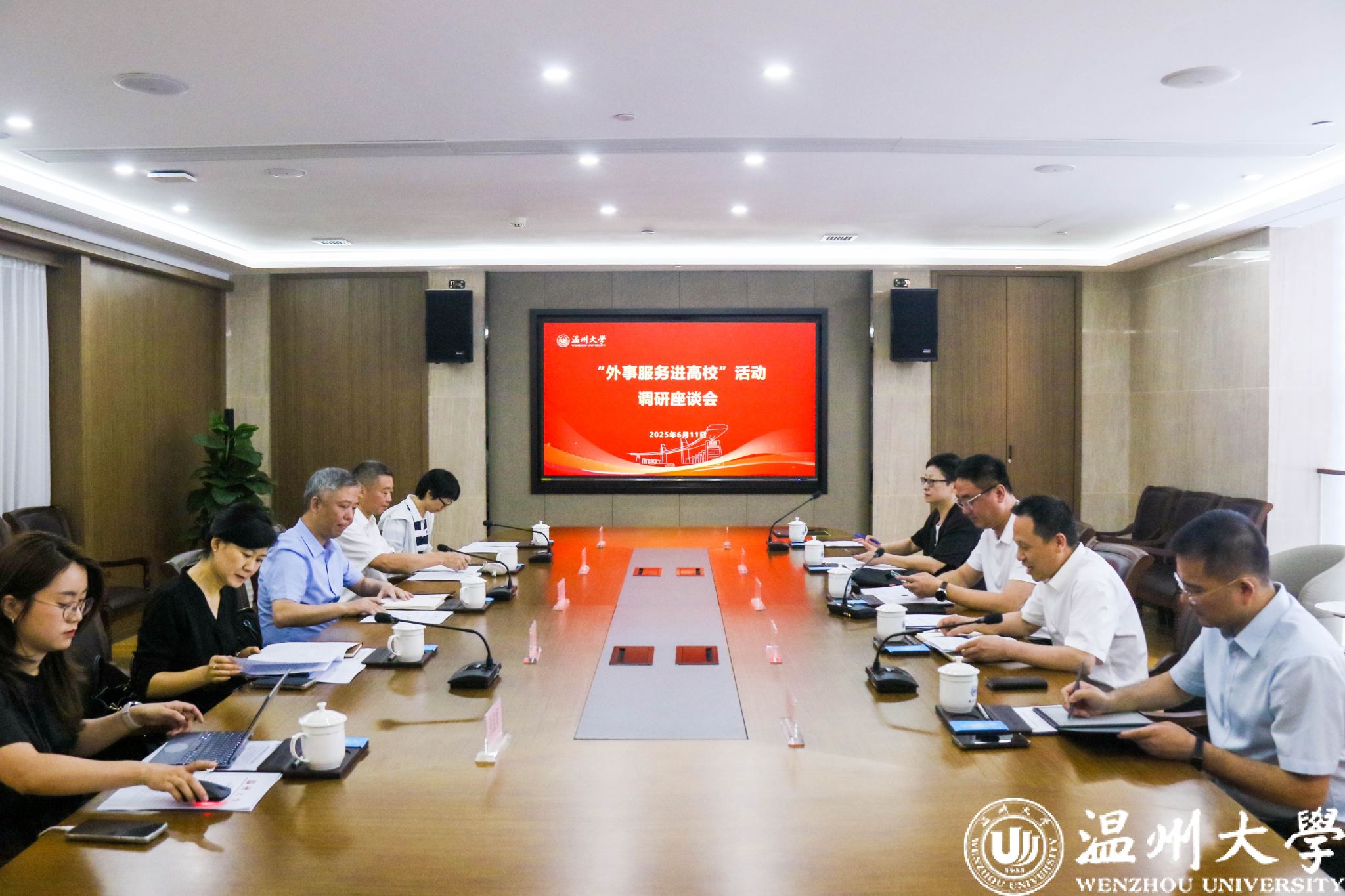 6月11日上午,温州市外办党组书记黄方雷一行到访亚洲无码 调研并召开“外事服务进高校”交流座谈会。校领导钱强、王舜出席,共商校地外事服务工作。