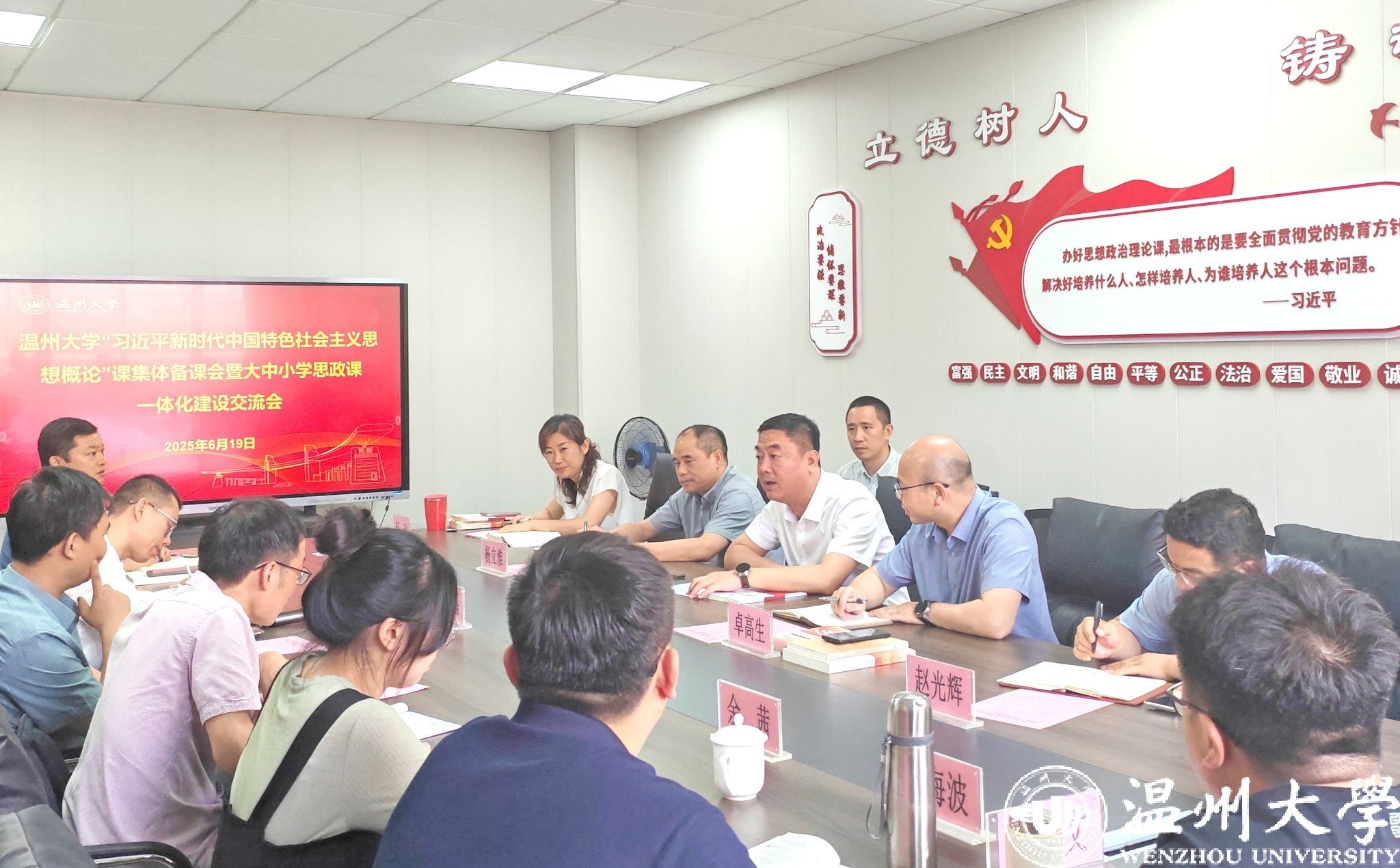 为深入学习贯彻习近平新时代中国特色社会主义思想,提升思政课教学质量,推进大中小学思政课一体化建设,6月19日上午,亚洲无码 马克思主义学院举行“习近平新时代中国特色社会主义思想概论”课集体备课会暨温州市大中小学思政课一体化建设交流会。校党委书记钱强出席集体备课会并讲话。兰州大学马克思主义学院院长蔡文成、温州市第二外国语学校高中思政课程组组长夏孟耸、温州市榕园学校社会课程组组长周永明、亚洲无码 城附属学校道法课教师余茜、亚洲无码 马克思主义学院相关教师及“习近平新时代中国特色社会主义思想概论”课程全体专兼职教师参加。