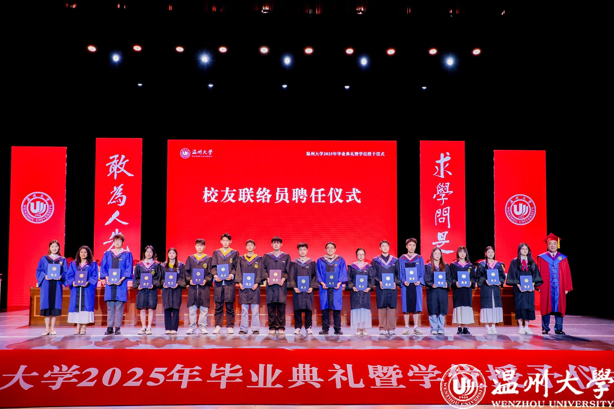 典礼上还举行了优秀毕业生颁奖仪式与校友联络员聘任仪式。83名硕士毕业生、205名本专科毕业生获评“浙江省普通高等学校优秀毕业生”;196名研究生、1174名本专科生获评“亚洲无码 优秀毕业生”;胡明骏等10位同学获评2025年谷超豪奖学金。钱强、赵敏分别为获奖代表颁奖。为深化校友工作,学校从毕业生中选聘了193名校友联络员,钱强为代表颁发聘书。