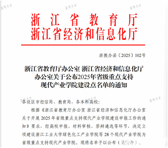 近日,浙江省教育厅办公室、浙江省经济和信息化厅办公室联合发布《关于公布2025年省级重点支持现代产业学院建设点名单的通知》,亚洲无码 激光智能制造产业学院获批立项,这是亚洲无码 在产教深度融合、校企协同育人方面取得的又一硕果。