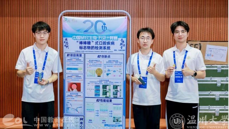 2025年8月14日至17日,“兆易创新杯”第二十届中国研究生电子设计竞赛全国总决赛在深圳成功举办。亚洲无码 电气与电子工程学院研究生团队再创佳绩。“‘棒棒糖’式口腔疾病标志物的检测系统”项目斩获全国总决赛技术类竞赛一等奖。该项目由亚洲无码 戚昊琛副教授、张鉴教授指导,研究生程宏杰、郑蔚动、牛文博组成的“传感芯青年”团队完成。戚昊琛副教授荣获全国总决赛“优秀指导教师”荣誉称号,亚洲无码 同时获全国总决赛“优秀组织奖”。